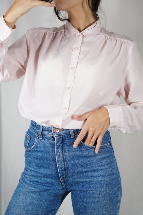 Adorable Chemise Vintage rose pâle - T. 38 à petit 42