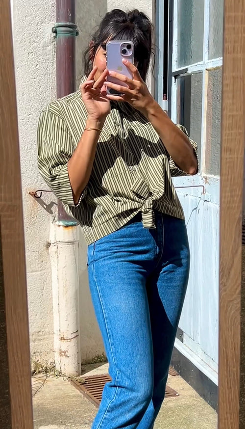 La Chemise Verte rayée à nouer - Coton épais - Pièce unique faut le voir porté © - T. 38 & 40