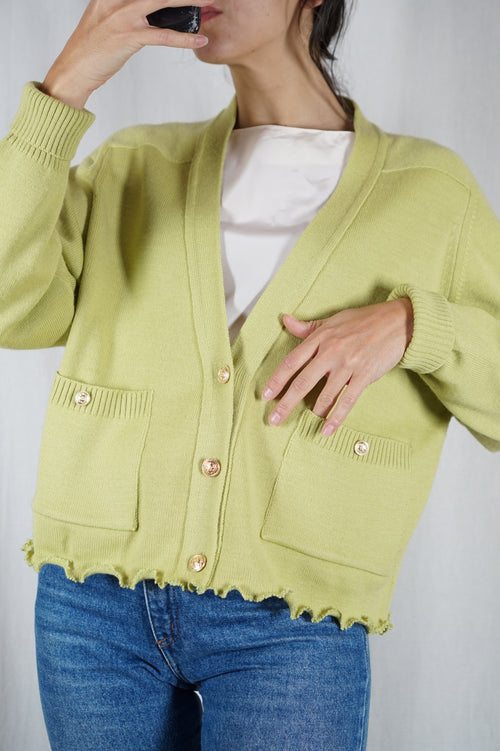 Cardigan Upcyclé couleur Vert anis - Pièce Unique faut le voir porté - Laine - T. grand 42 à 46