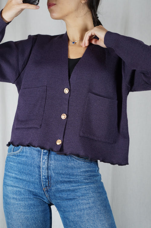 Cardigan Upcyclé couleur Aubergine - Laine - Pièce Unique faut le voir porté - T. 38 à 42