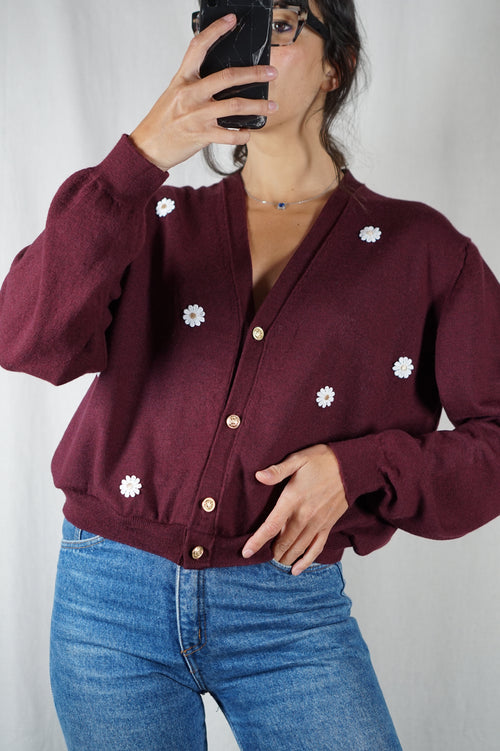 Cardigan couleur prune Upcyclé & Fleuri - Pièce Unique faut le voir porté - T. 36 à 42 (lire descr)