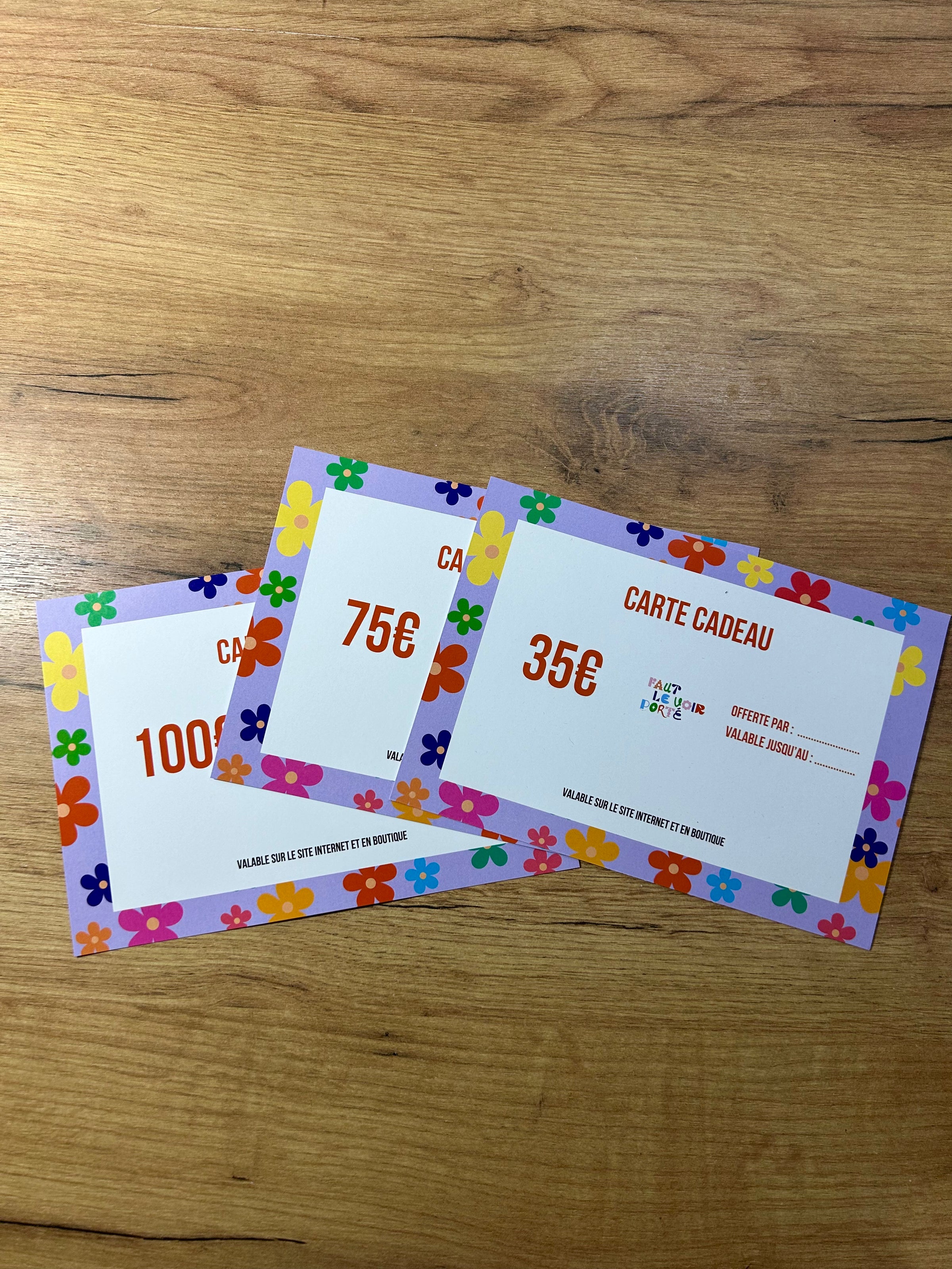 Après avoir passé commande, vous recevrez une jolie carte cadeau à l'adresse indiquée, avec un code qu'il suffira de rentrer lors du passage en caisse après sélection des articles.