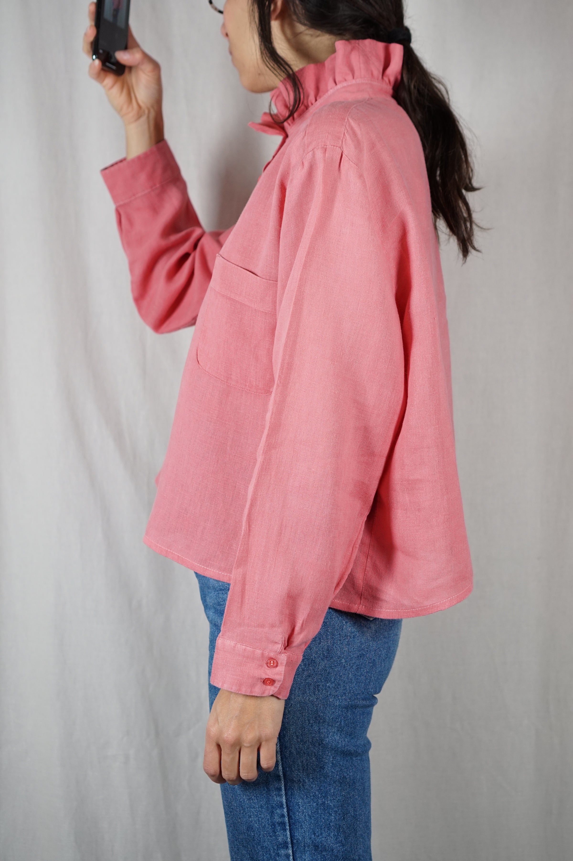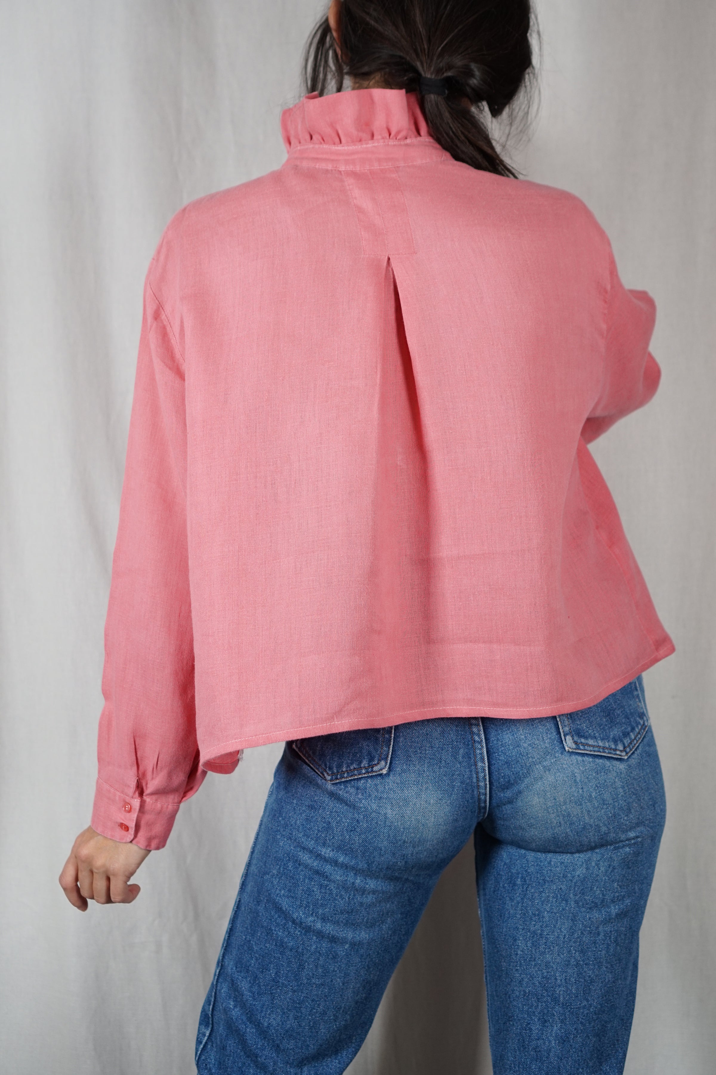 La Chemise Rose Chiné à Collerette - Lin - Pièce unique faut le voir porté © - T. 38 à 42