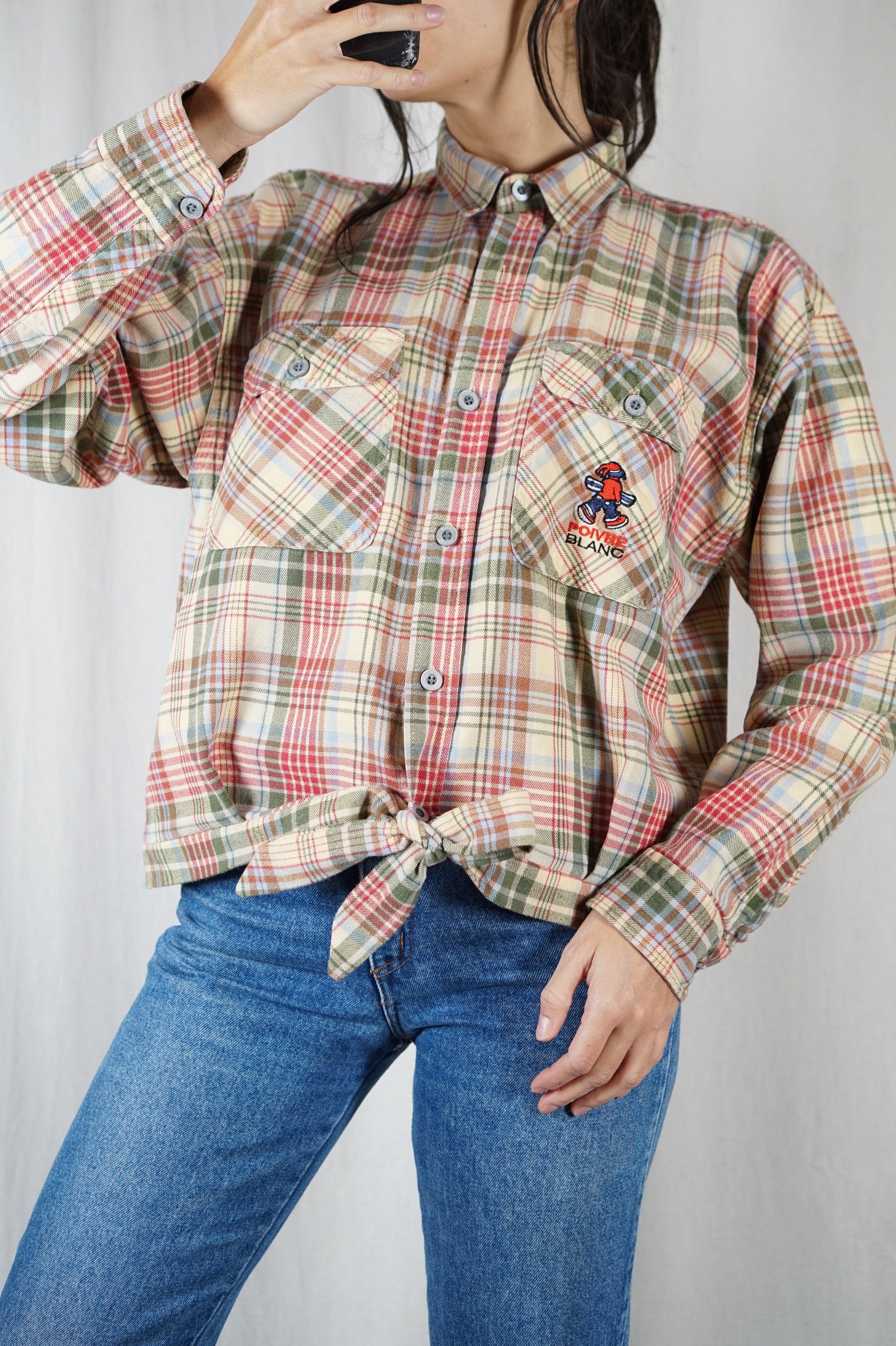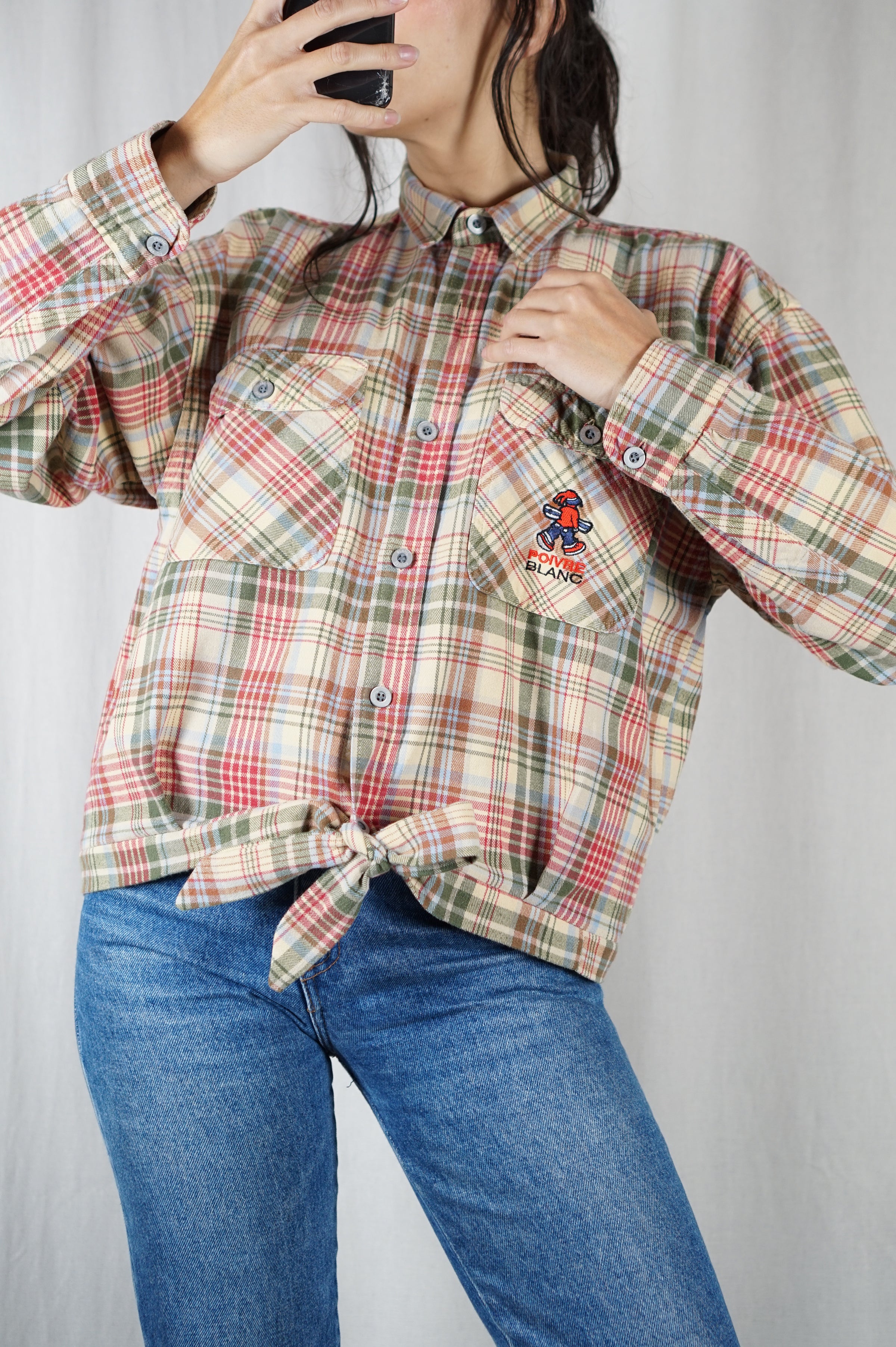 Description  : Pièce Unique faut le voir porté - Superbe Sur-Chemise à nouer imprimée - Coton épais et doux - Marque poivre blanc - upcyclée par mes soins - La Chemise était à l'origine une pièce Vintage  d'une très belle qualité mais trop longue et un peu trop banale à mon goût- je l'ai raccourcie, j'ai recréé des pinces en bas et ai retravaillé le bas afin qu'elle puisse se nouer sur l'avant  - La coupe est moyenne - belle matière et très agréable à porter
