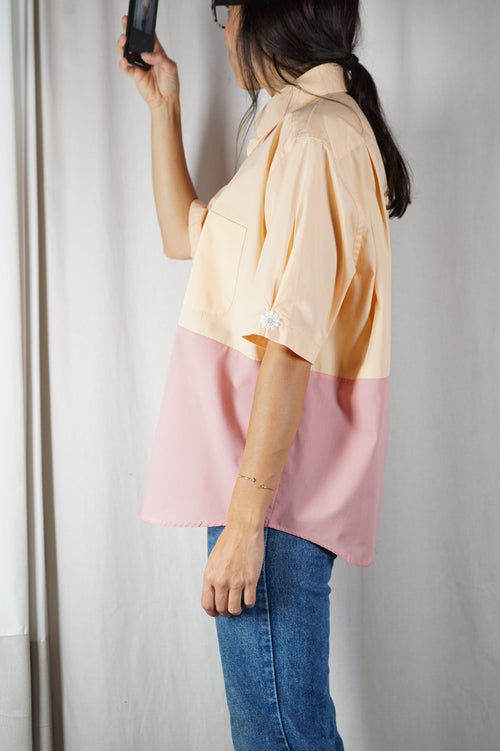 La Chemise Sorbet Abricot & Vieux Rose - Coton mélangé - Pièce unique faut le voir porté © - T. 38 à 42 - idéale grandes!