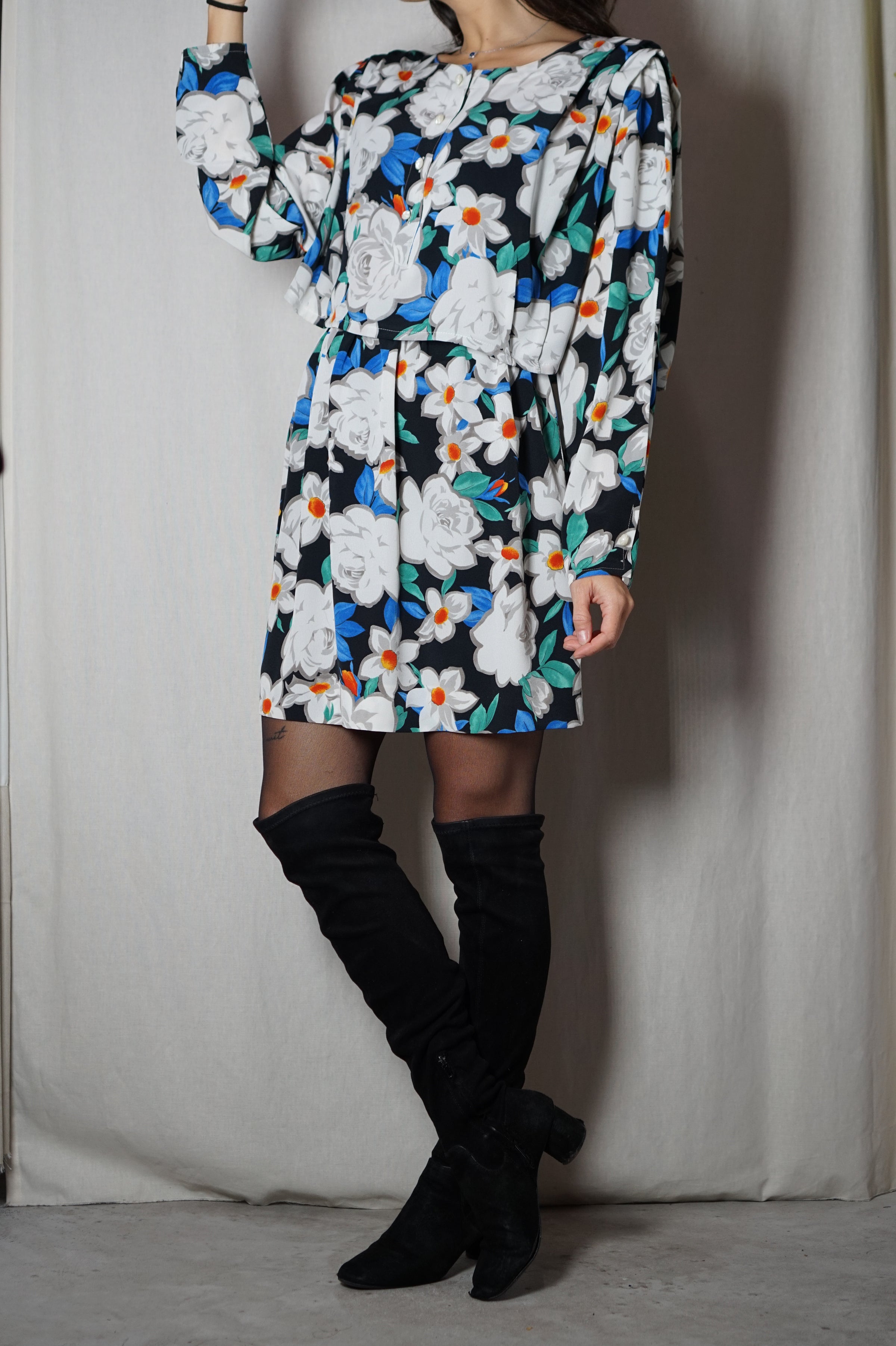Cet Ensemble à motifs de faut le voir porté est une pièce unique confectionnée à partir d'une magnifique Robe Vintage de très belle qualité en polyester fluide, agréable à porter et opaque, fabriquée en France. La matière est superbe, la pièce d'origine était très peu portée (excellent état). Très jolis détails aux épaules (pinces) et boutonnière.