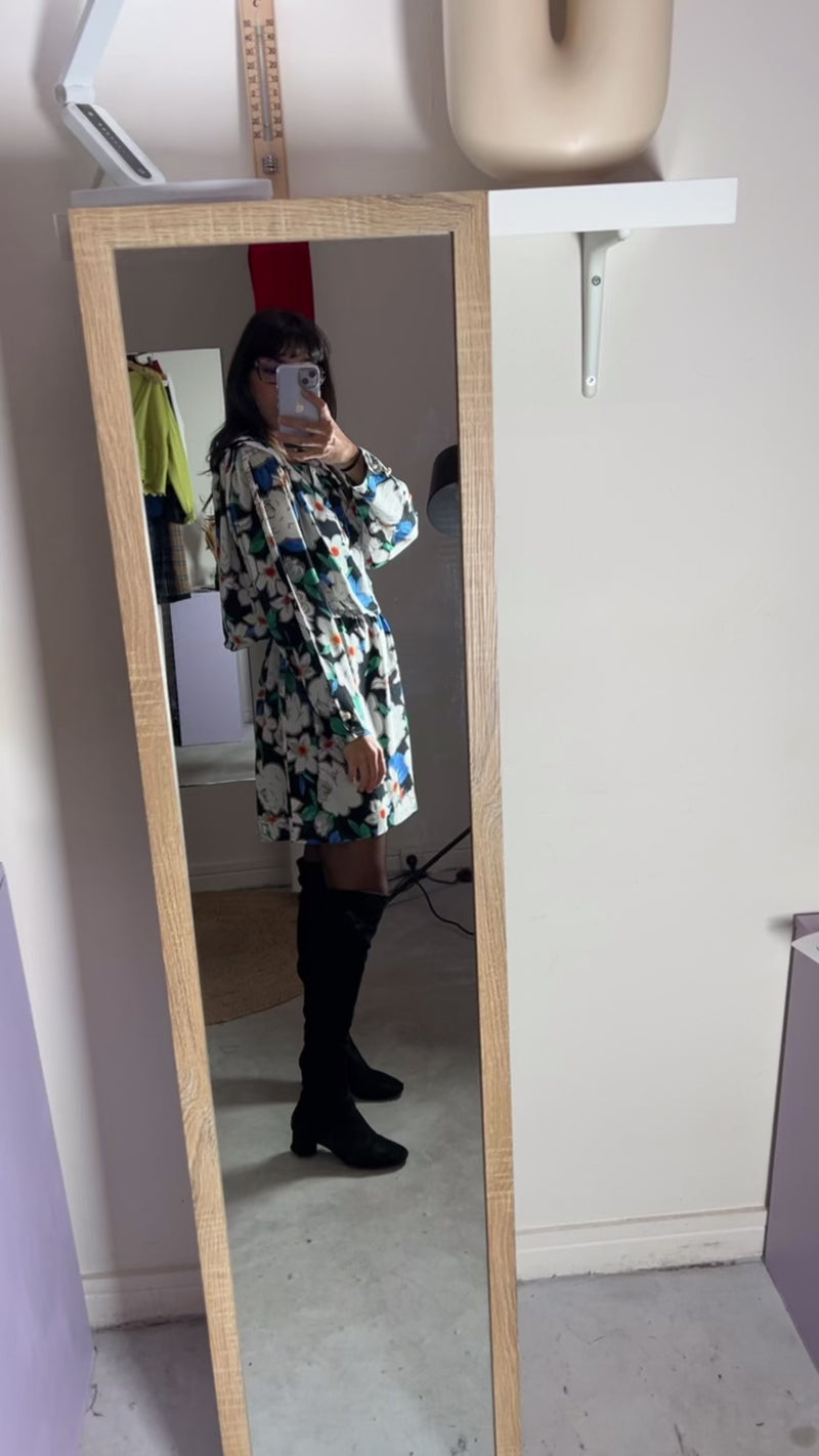 Précision : la jupe a une très légère trace (traitée) à l'arrière en bas, ne se voit absolument pas car se noie dans les motifs, je tiens juste à le préciser.