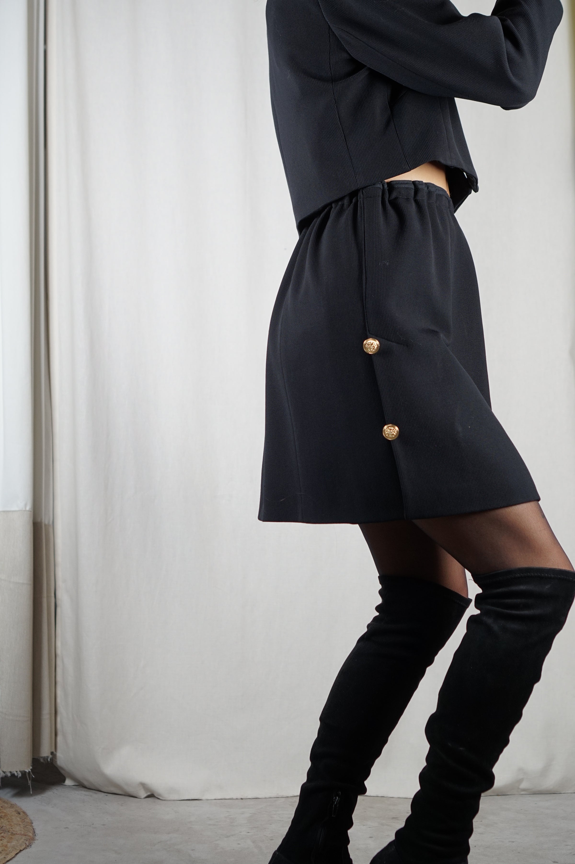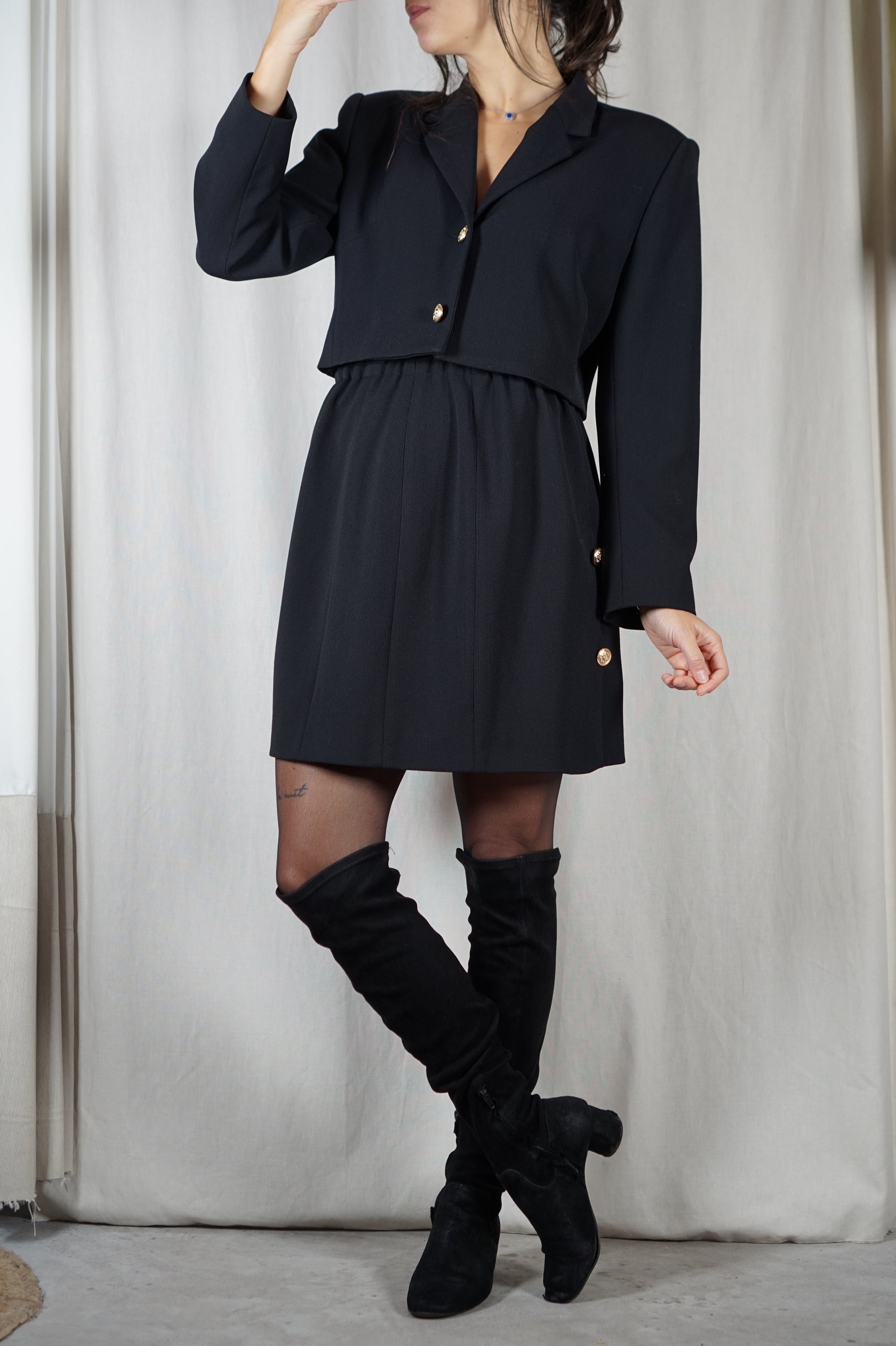 L'Ensemble Noir à boutonnages dorés - Laine & Polyester - T. 36 & 38 - T. 1m72/73 max recommandé