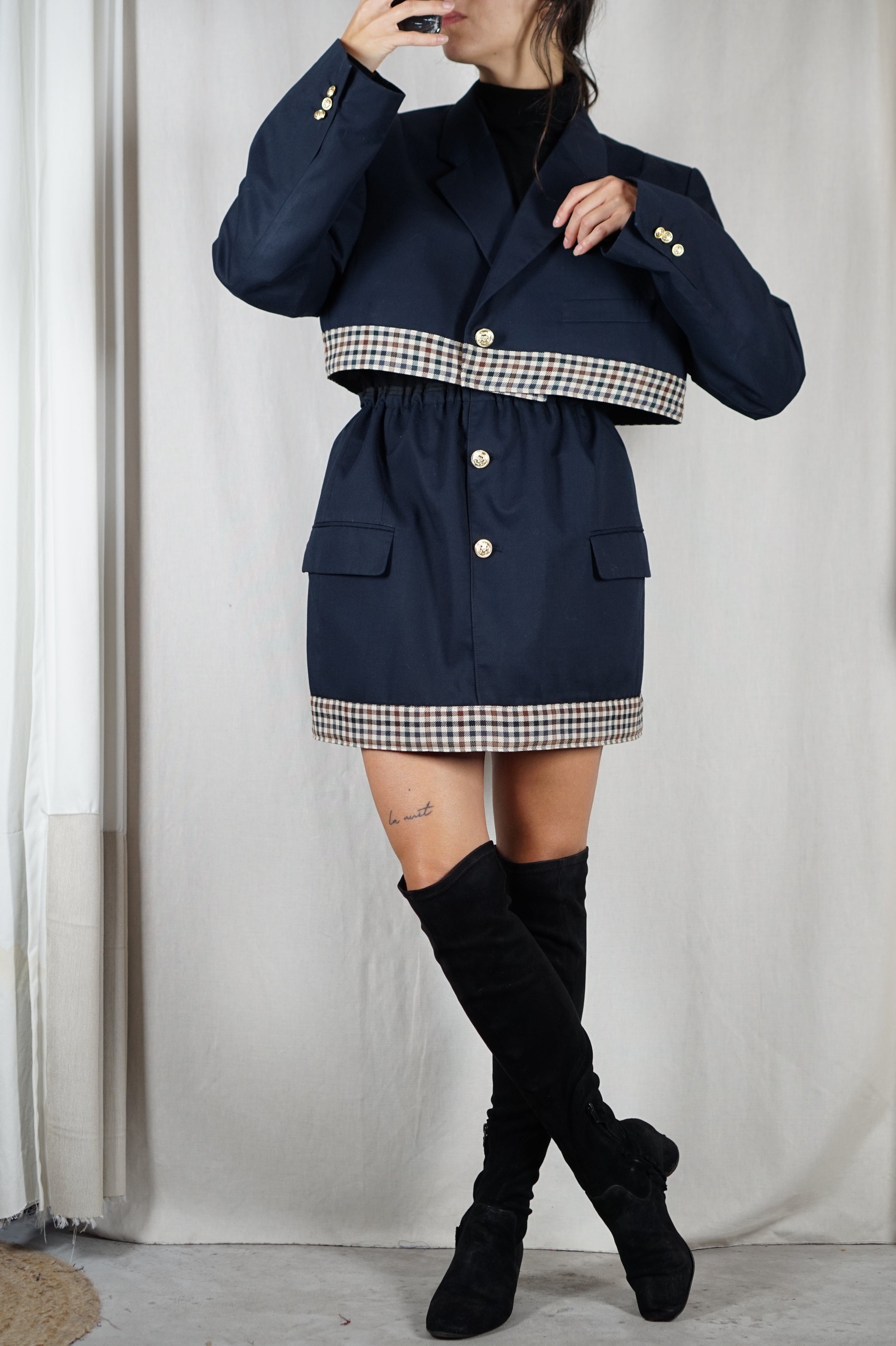 L'Ensemble Navy en Laine & Tartan - Pièce Unique faut le voir porté - T. 38 & 40 - 1m65/67 max reco