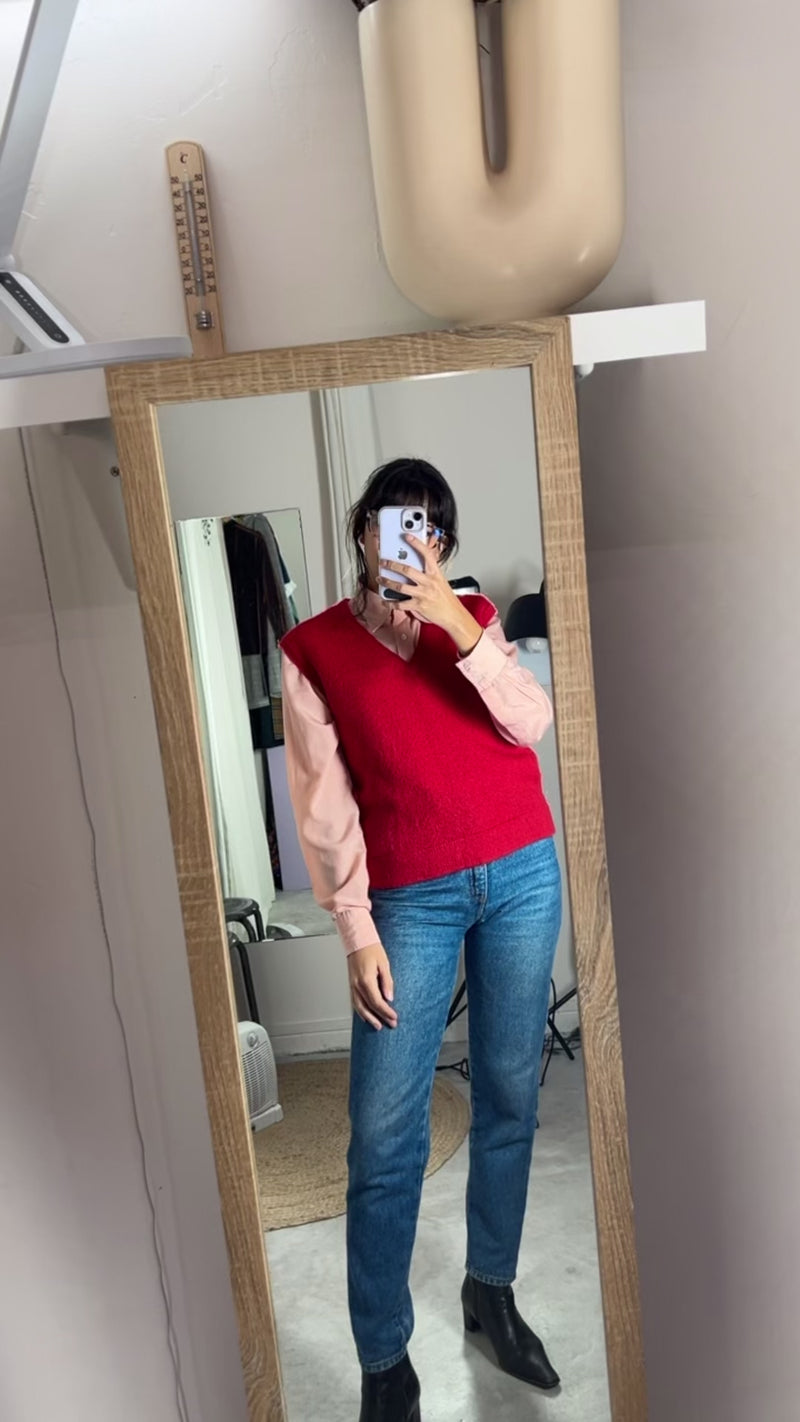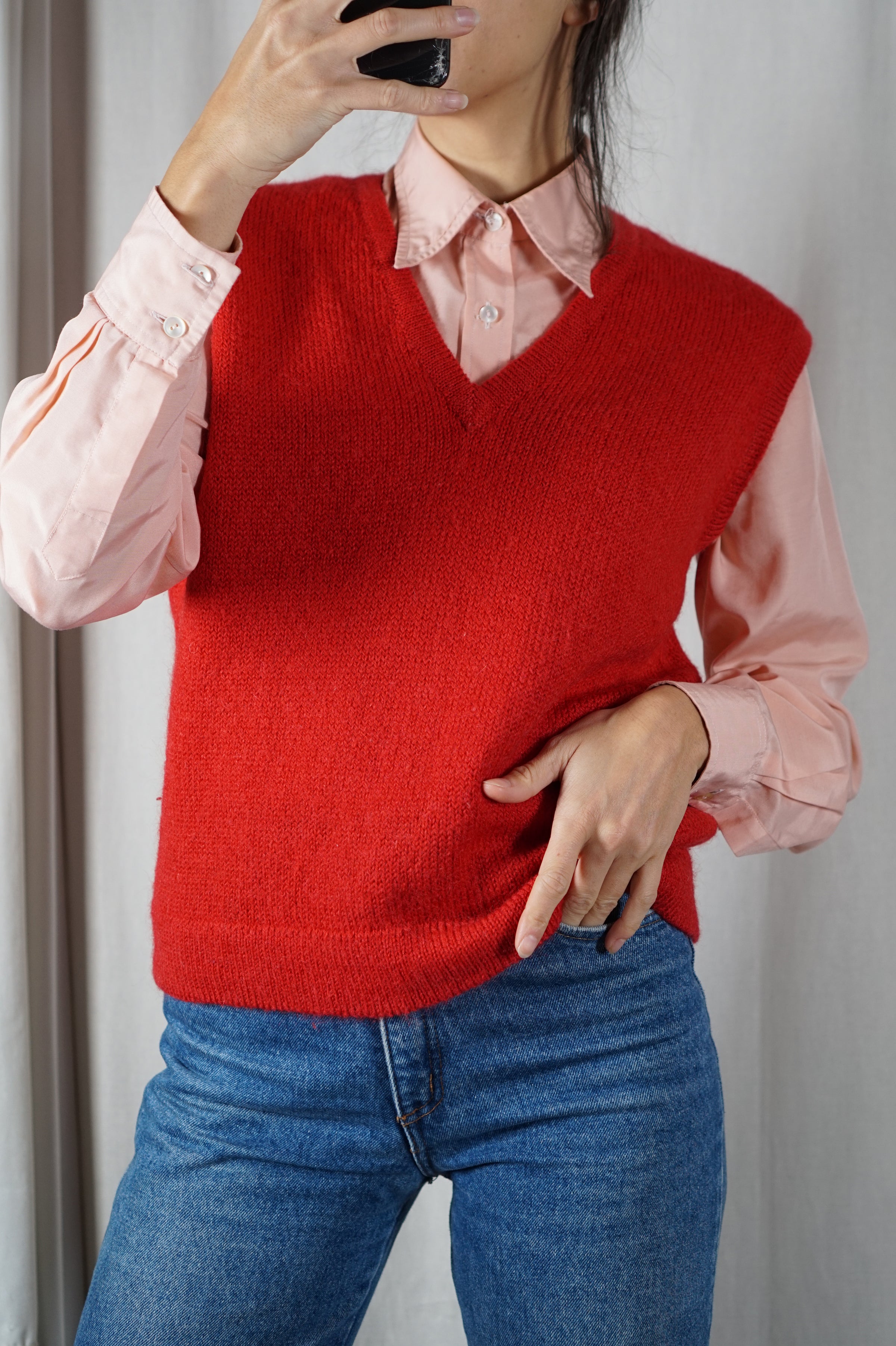 Superbe Maille vintage sans manches en laine - Tricoté main - T. 38/40 à 42
