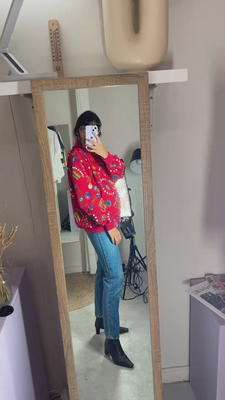 Description : Superbe Bomber Vintage - magnifiques couleurs et imprimé