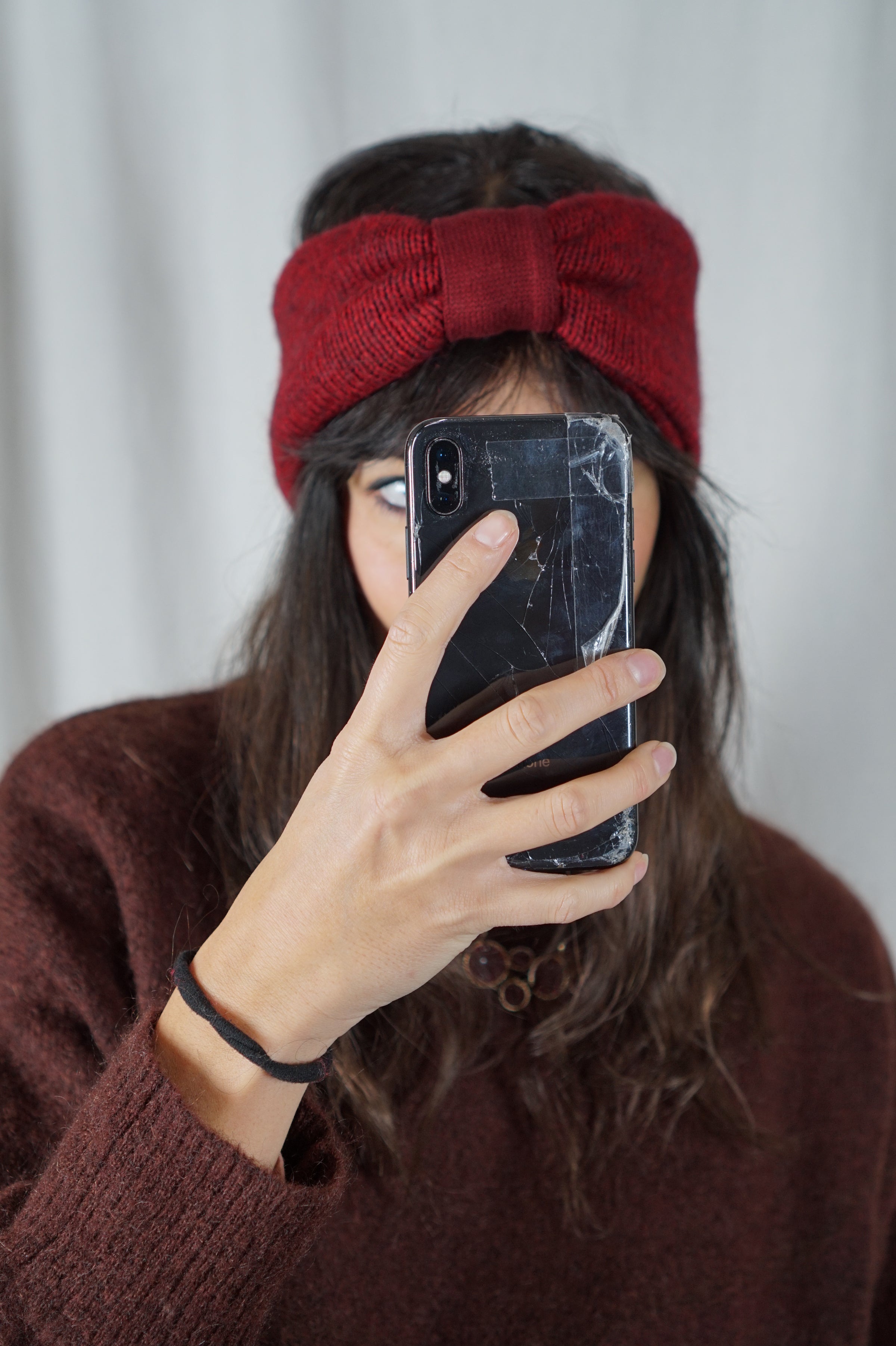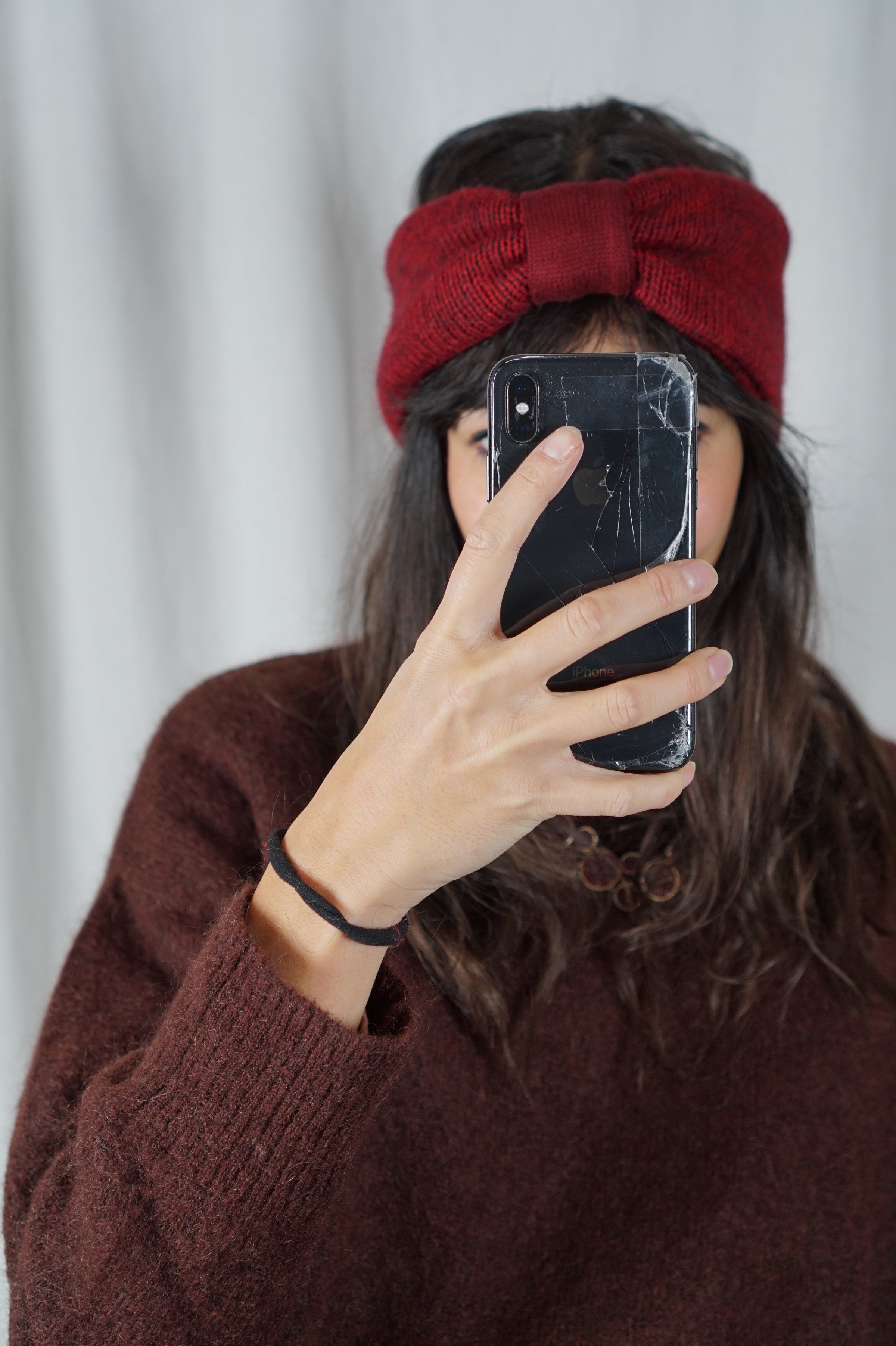 Bandeau de tête upcyclé Bordeaux - Laine & Mohair - Taille Unique