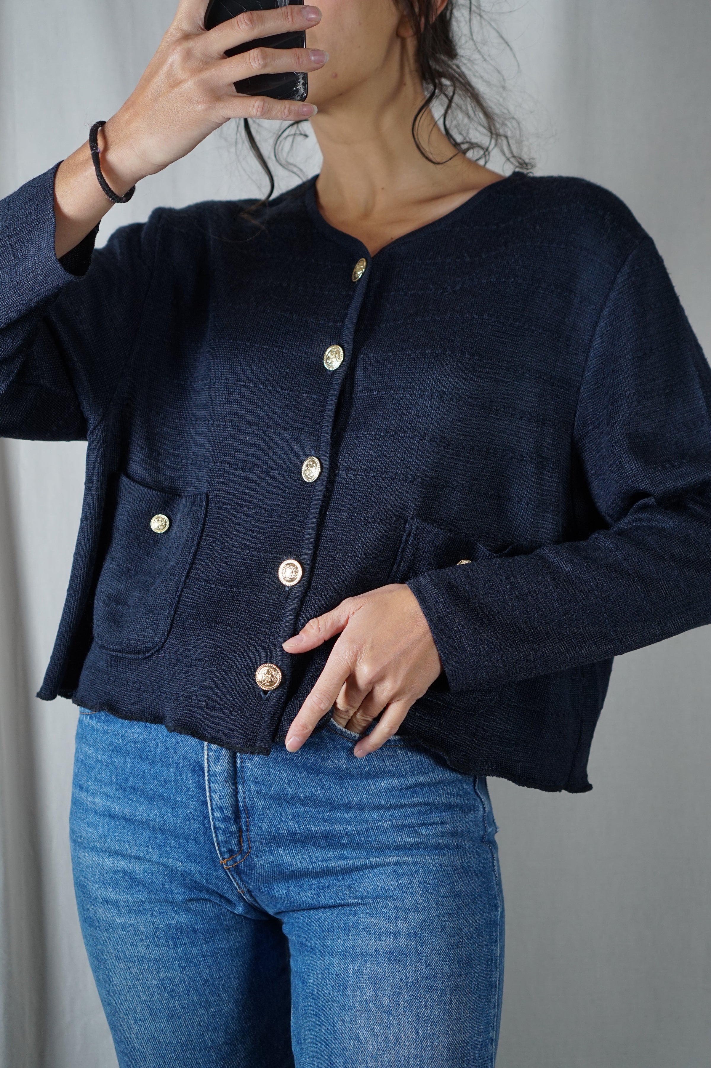 Cardigan Navy Upcyclé - Pièce Unique faut le voir porté - T. 42 à 46