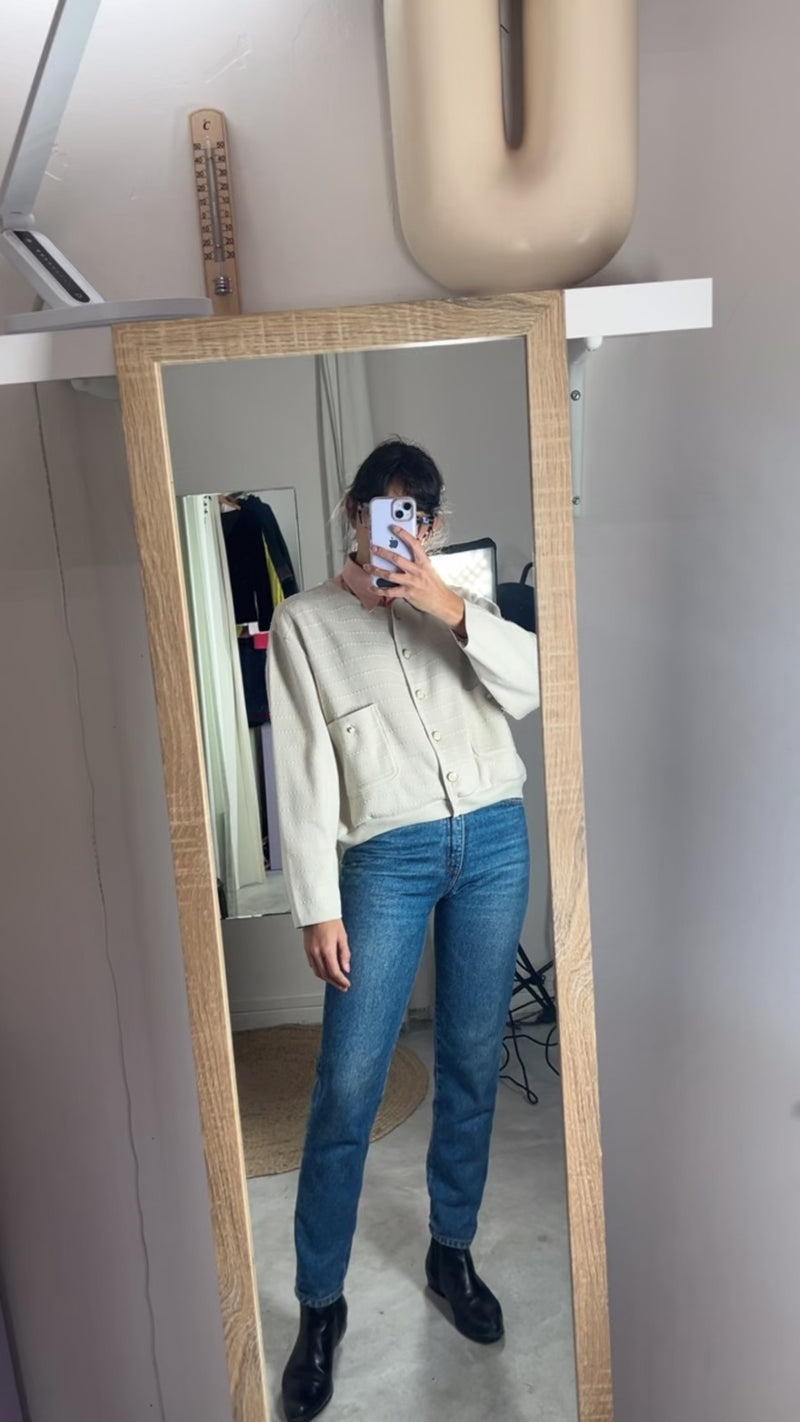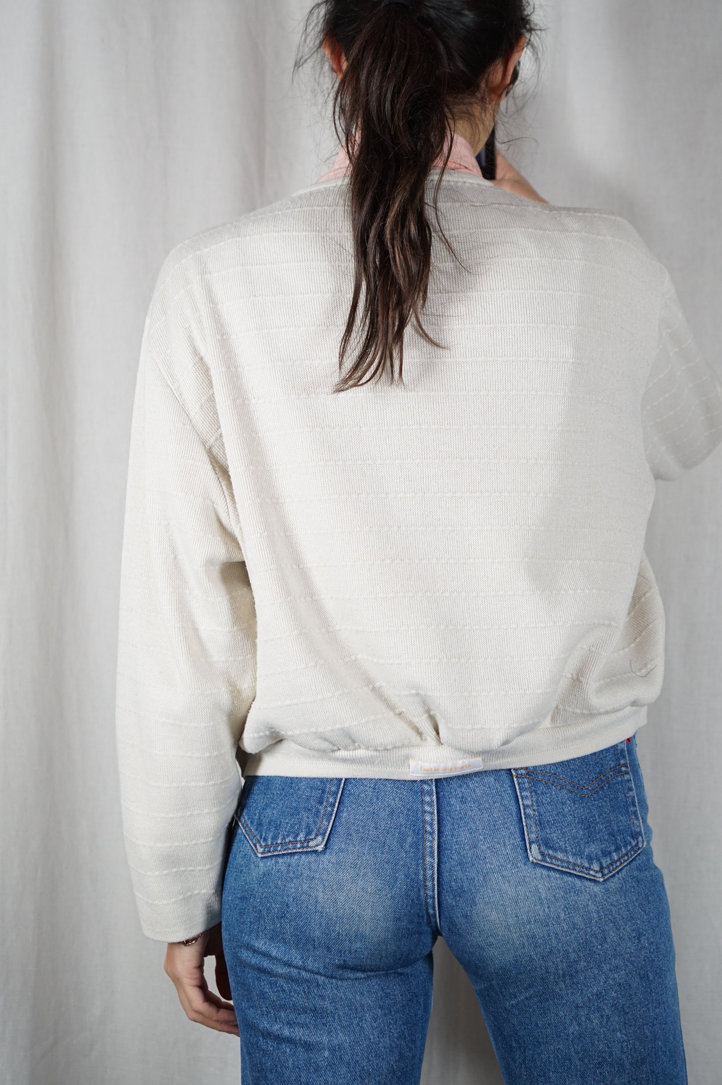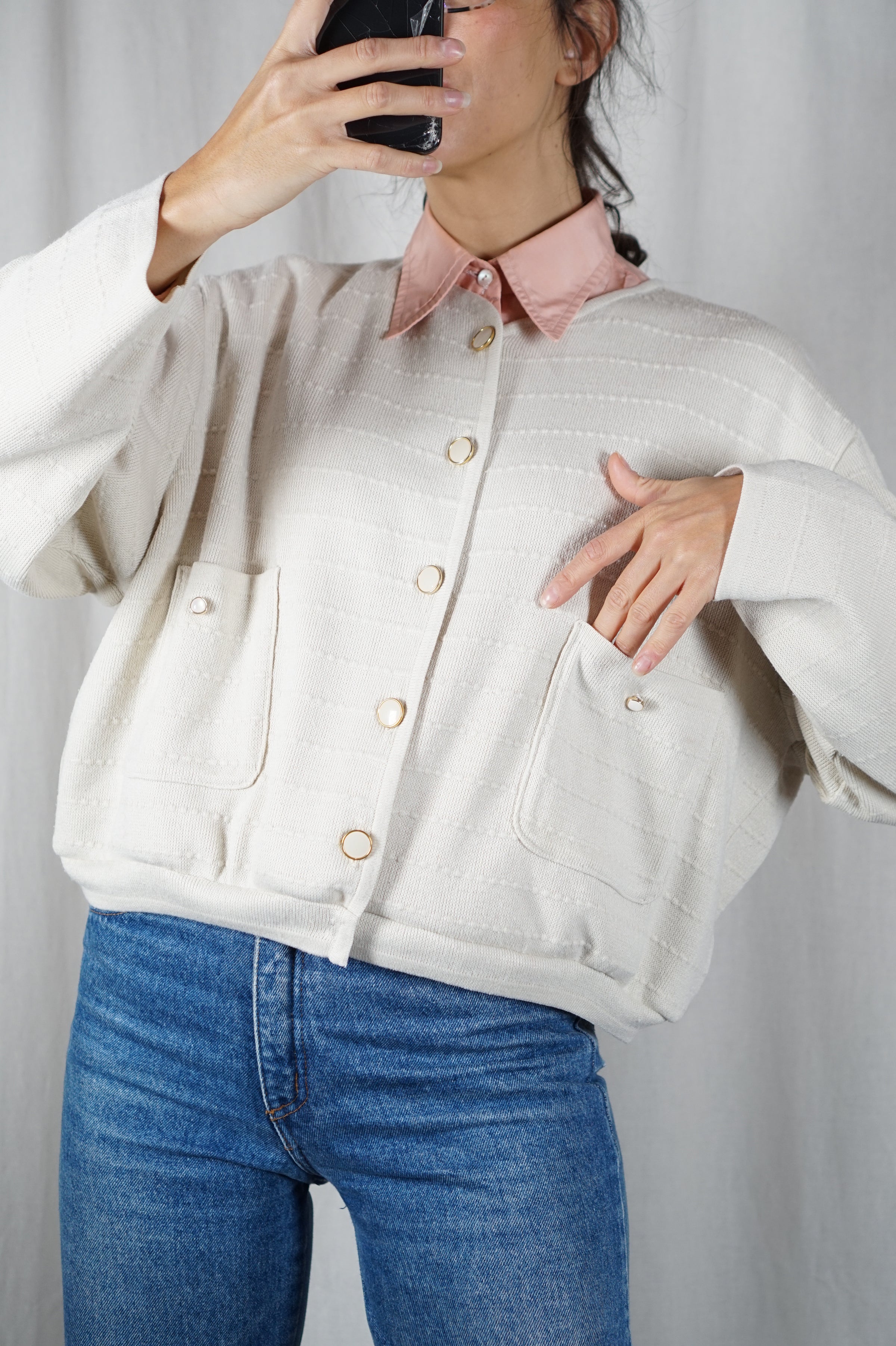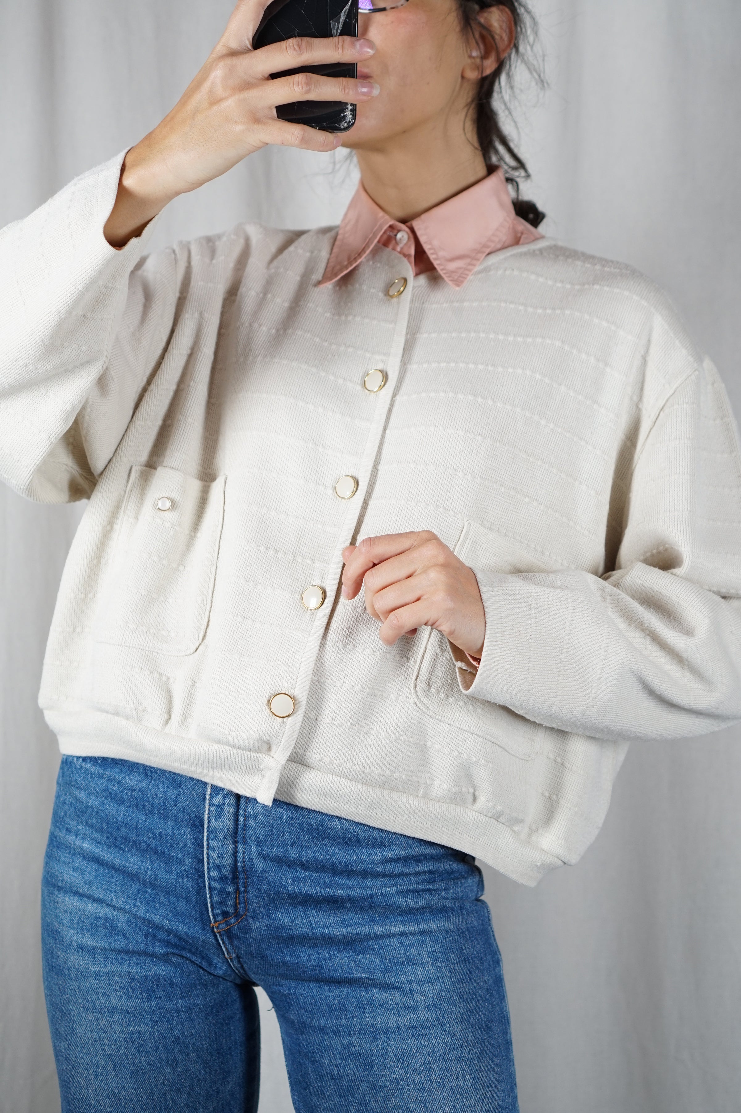 Cardigan Upcyclé couleur Blanc cassé - Pièce Unique faut le voir porté - T. 42 & 44