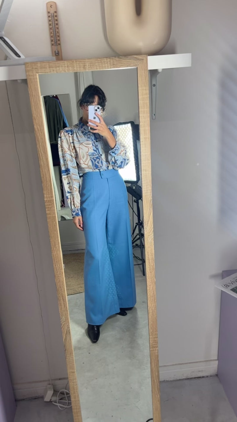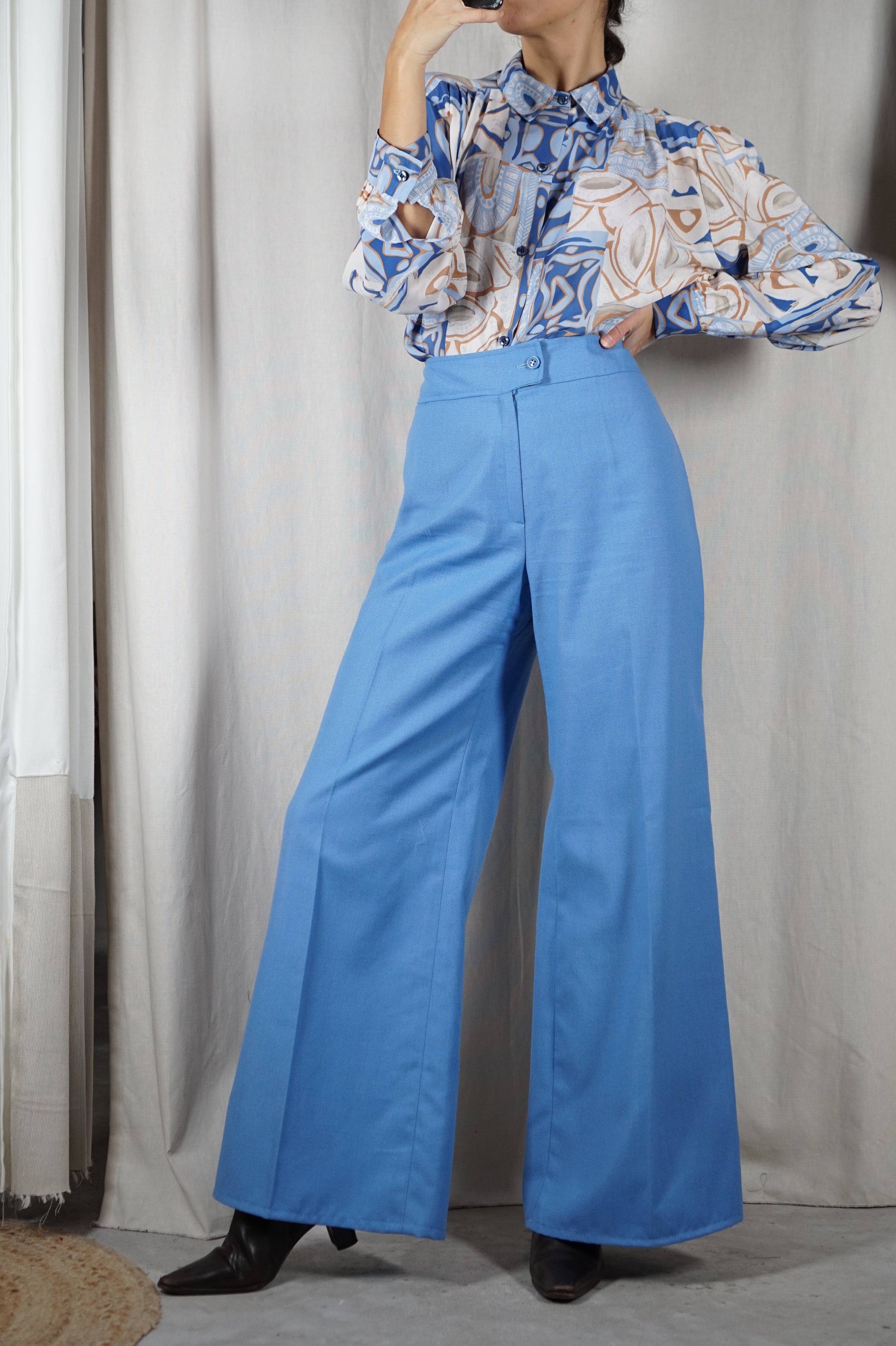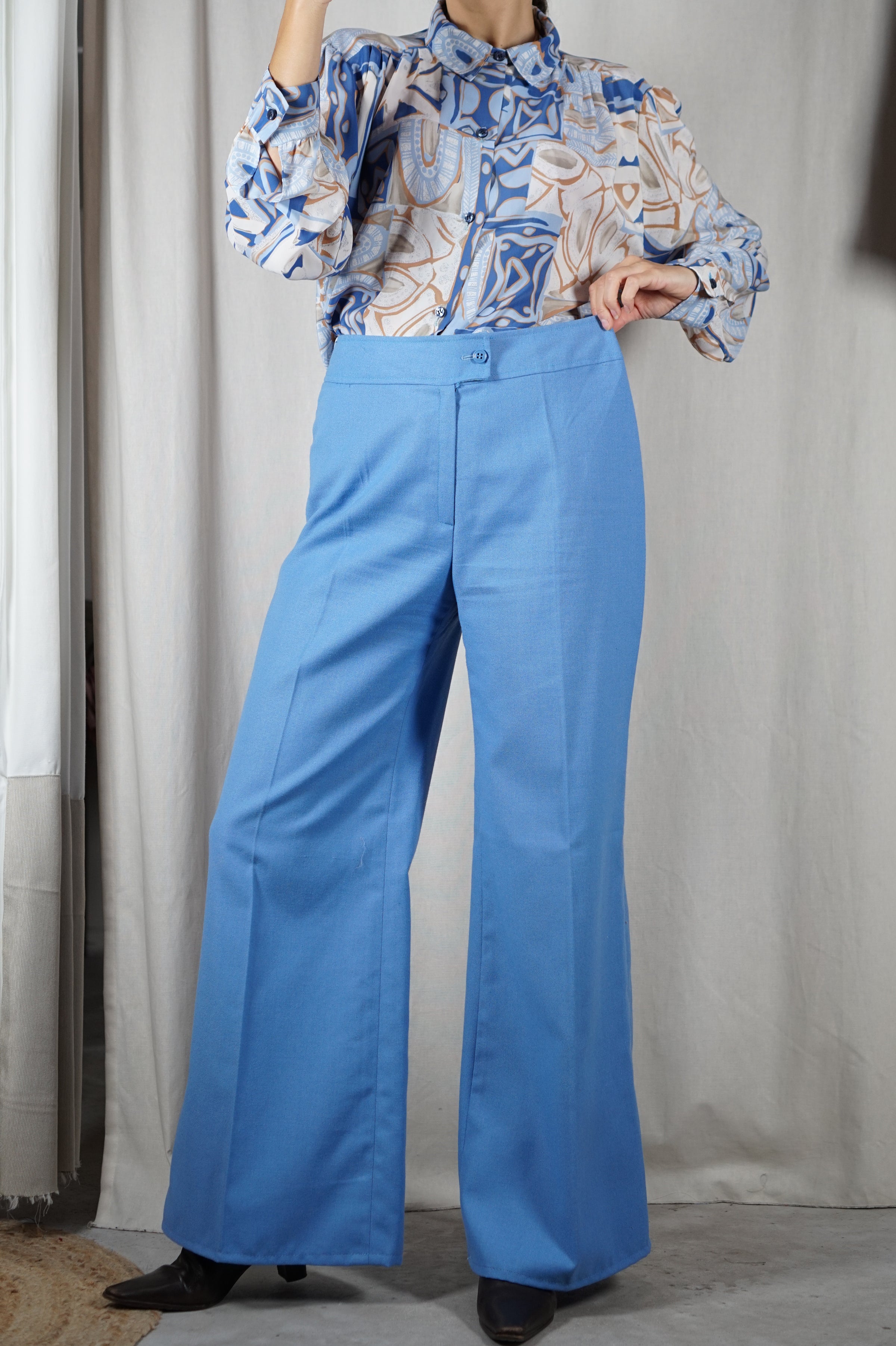 Incroyable Pantalon Vintage à jambes larges - Bleu bébé - T. 40