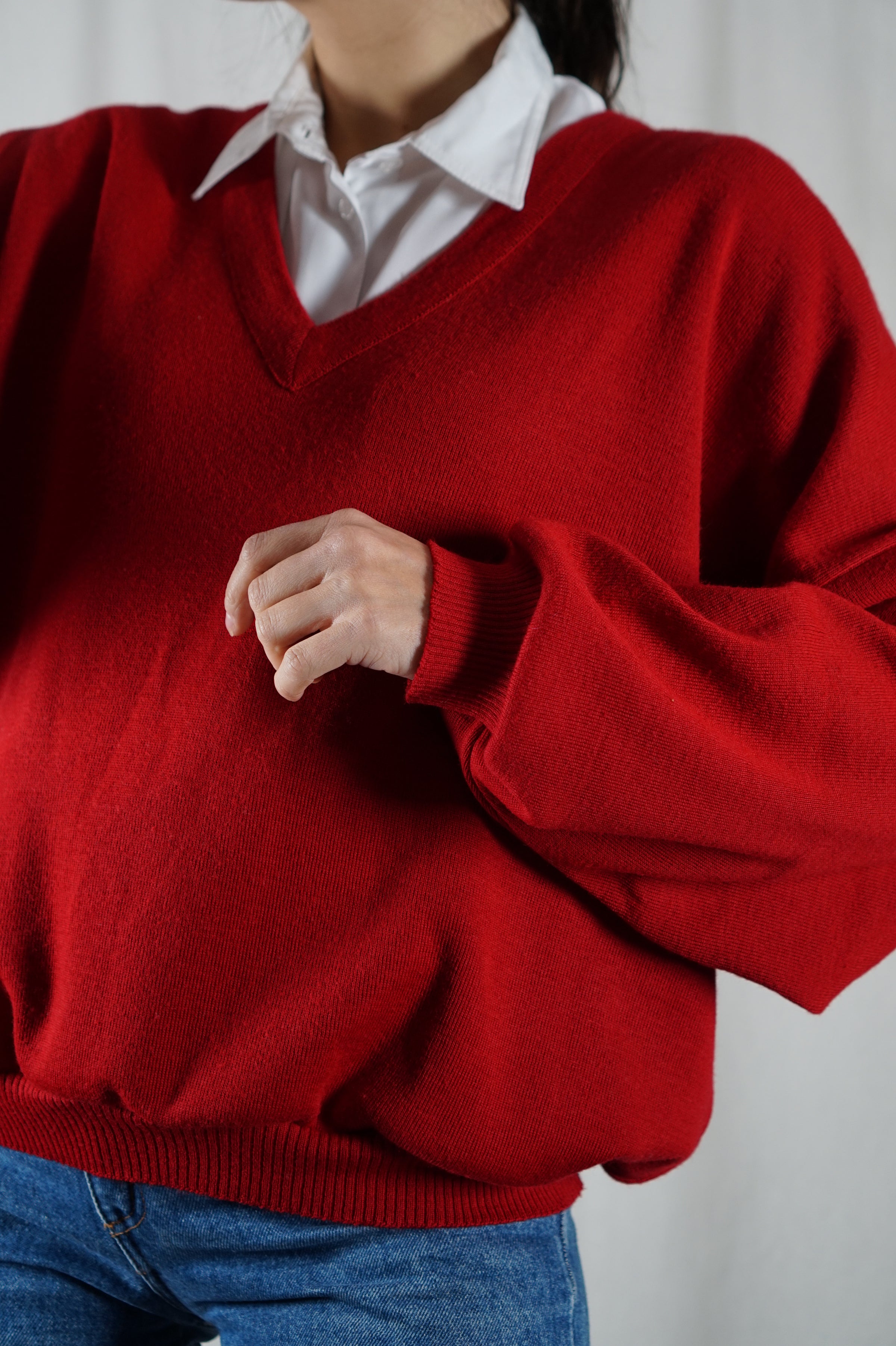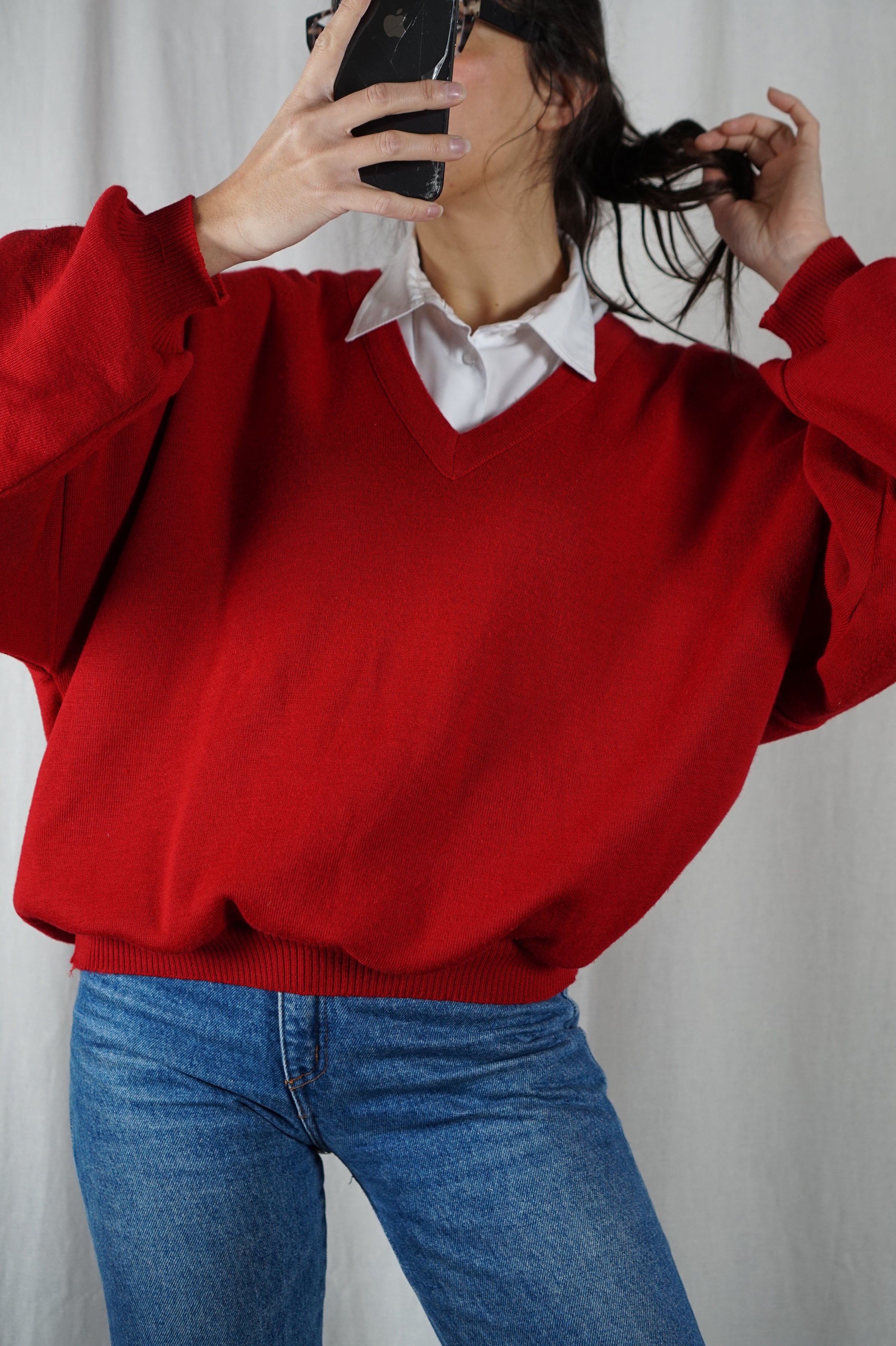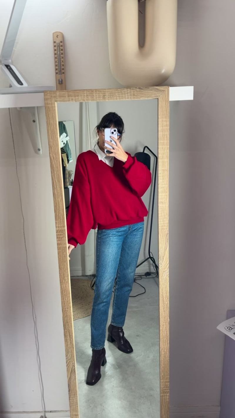 Incroyable Pull Vintage Rouge Carmin upcyclé - Laine vierge - Pièce unique - T. 42/44 à 48