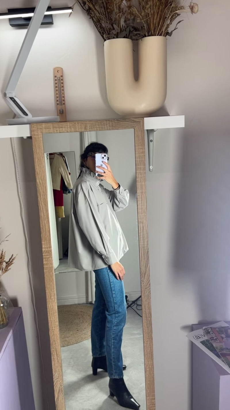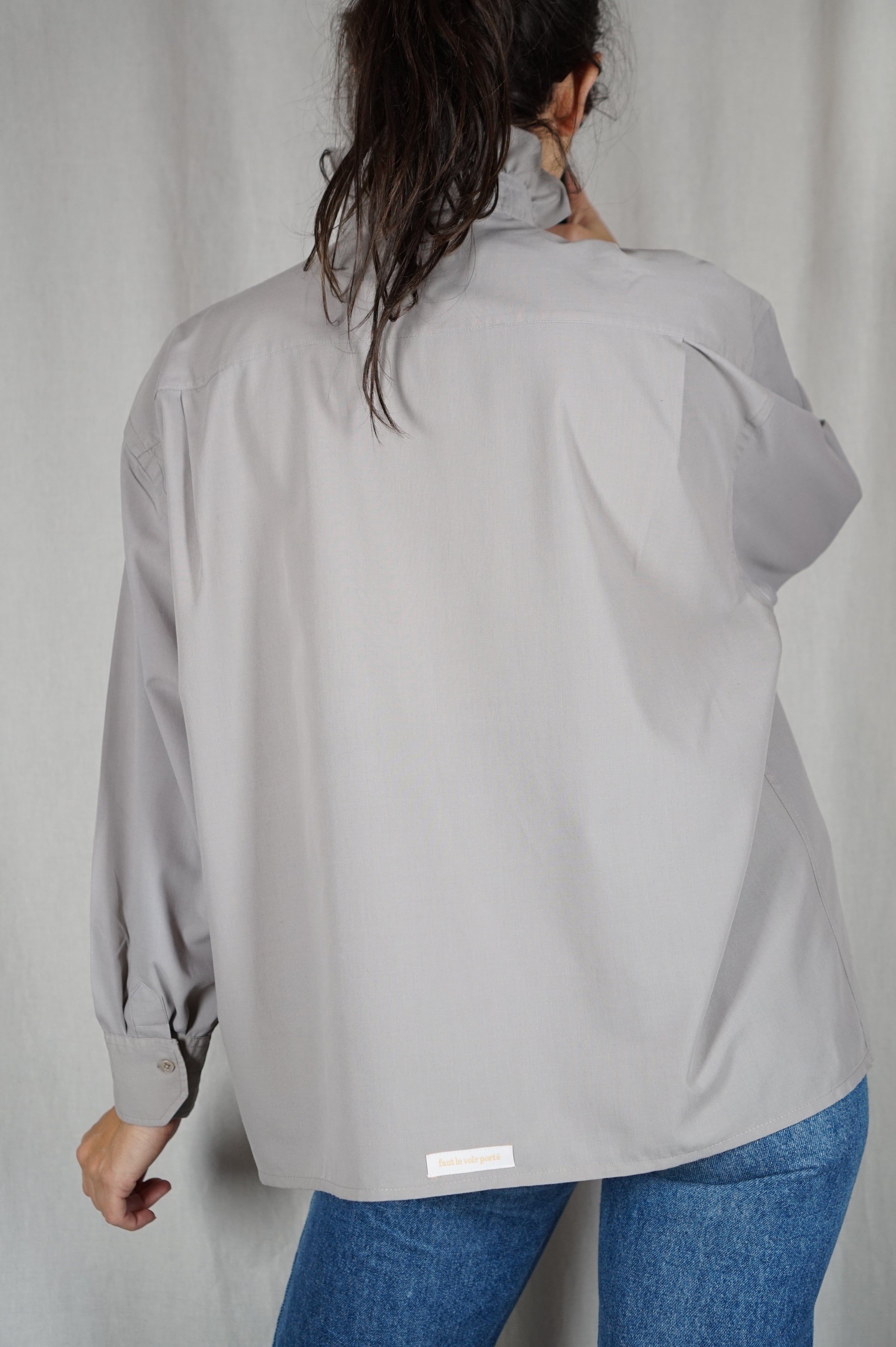 La Chemise Taupe à Collerette - Coton mélangé - Pièce unique faut le voir porté © - T. 36 à grand 42