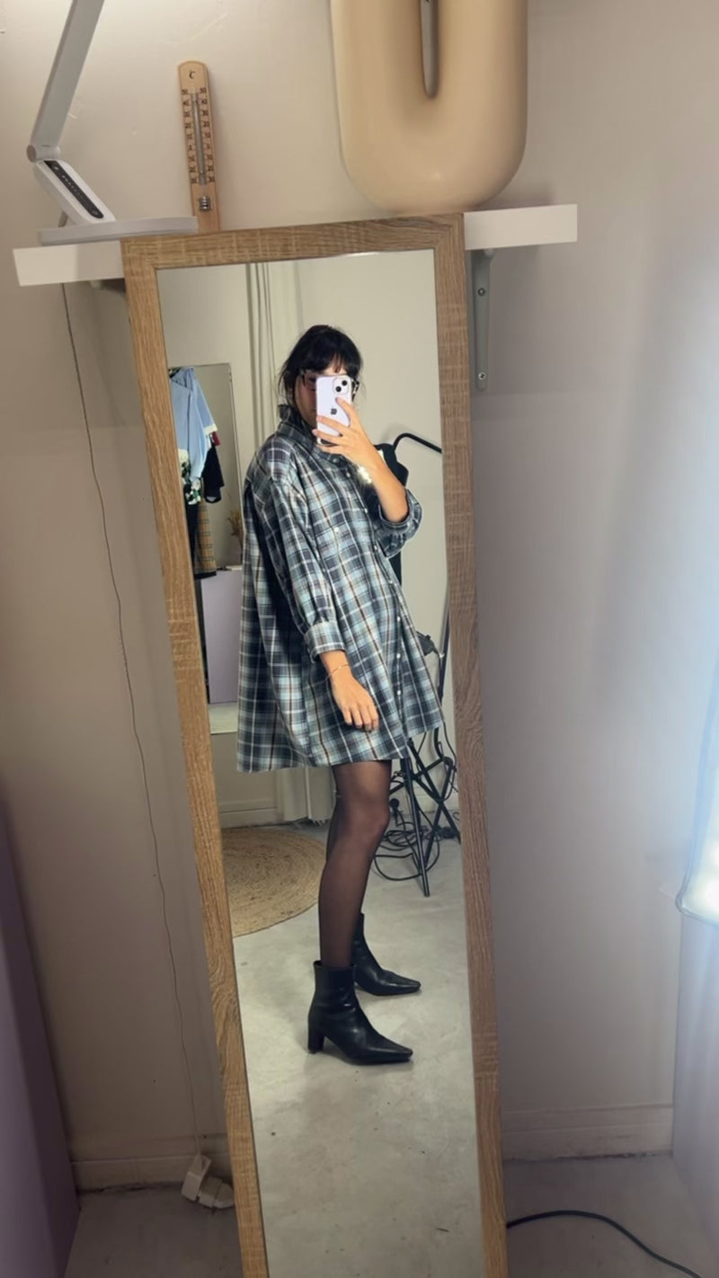 Cette Robe Collerette à carreaux de faut le voir porté est une pièce unique confectionnée à partir d'une belle Chemise Vintage pour Homme extra-large en coton doux mélangé opaque. La matière est très agréable à porter. Très belle qualité de la chemise initiale.