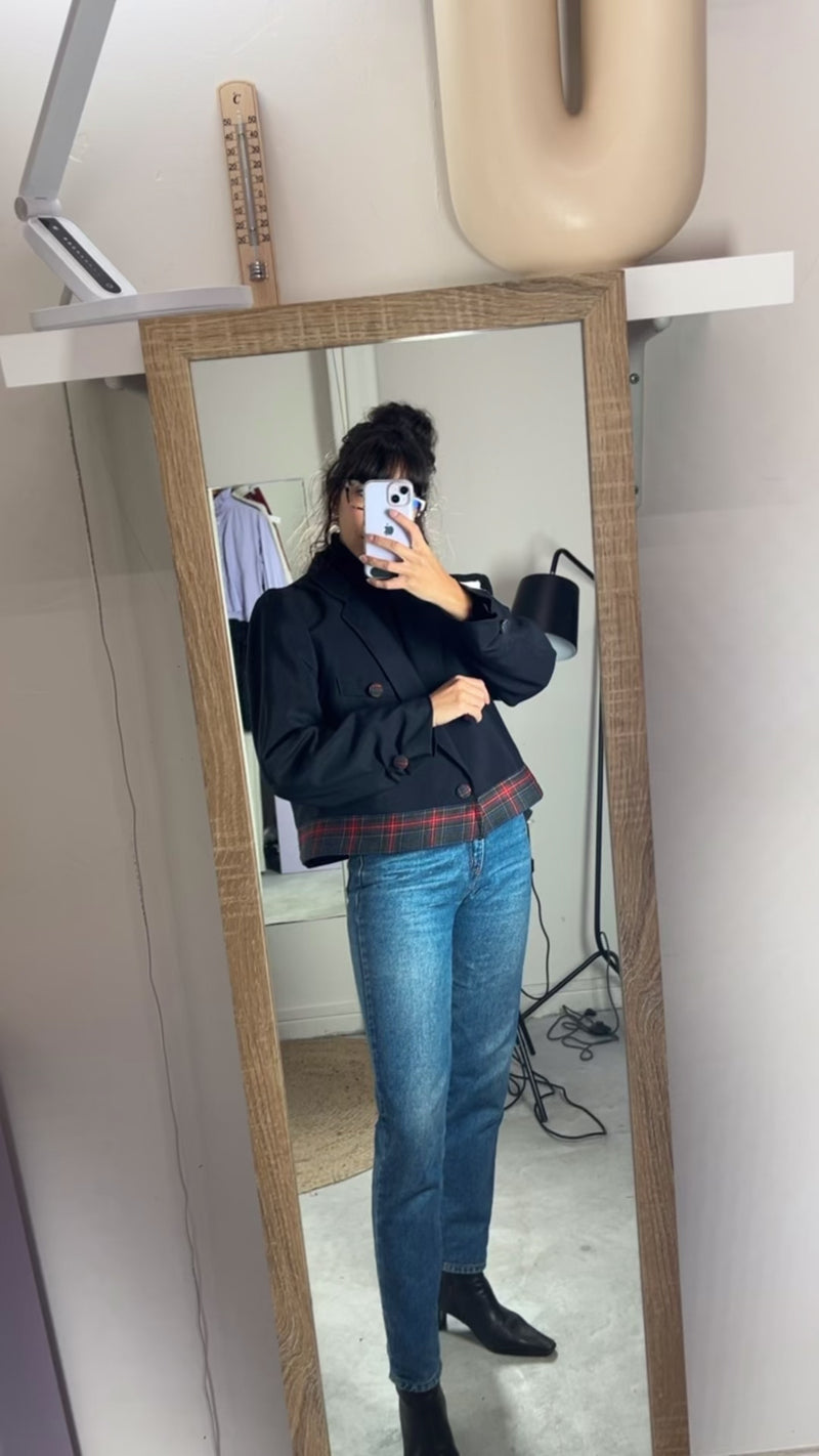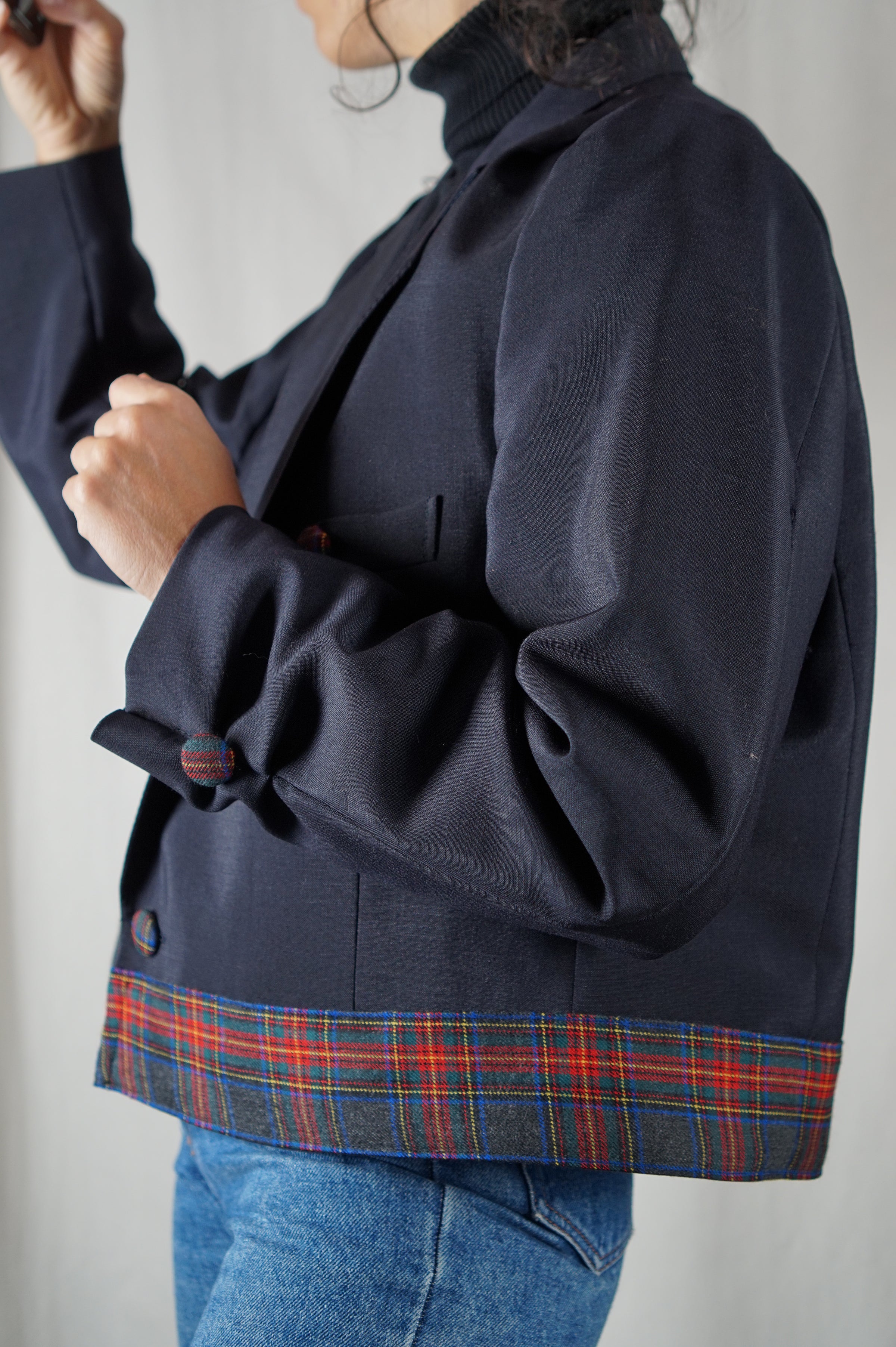 La Veste Tartan Navy - Laine mélangée - Pièce unique faut le voir porté © - T. 42 & 44
