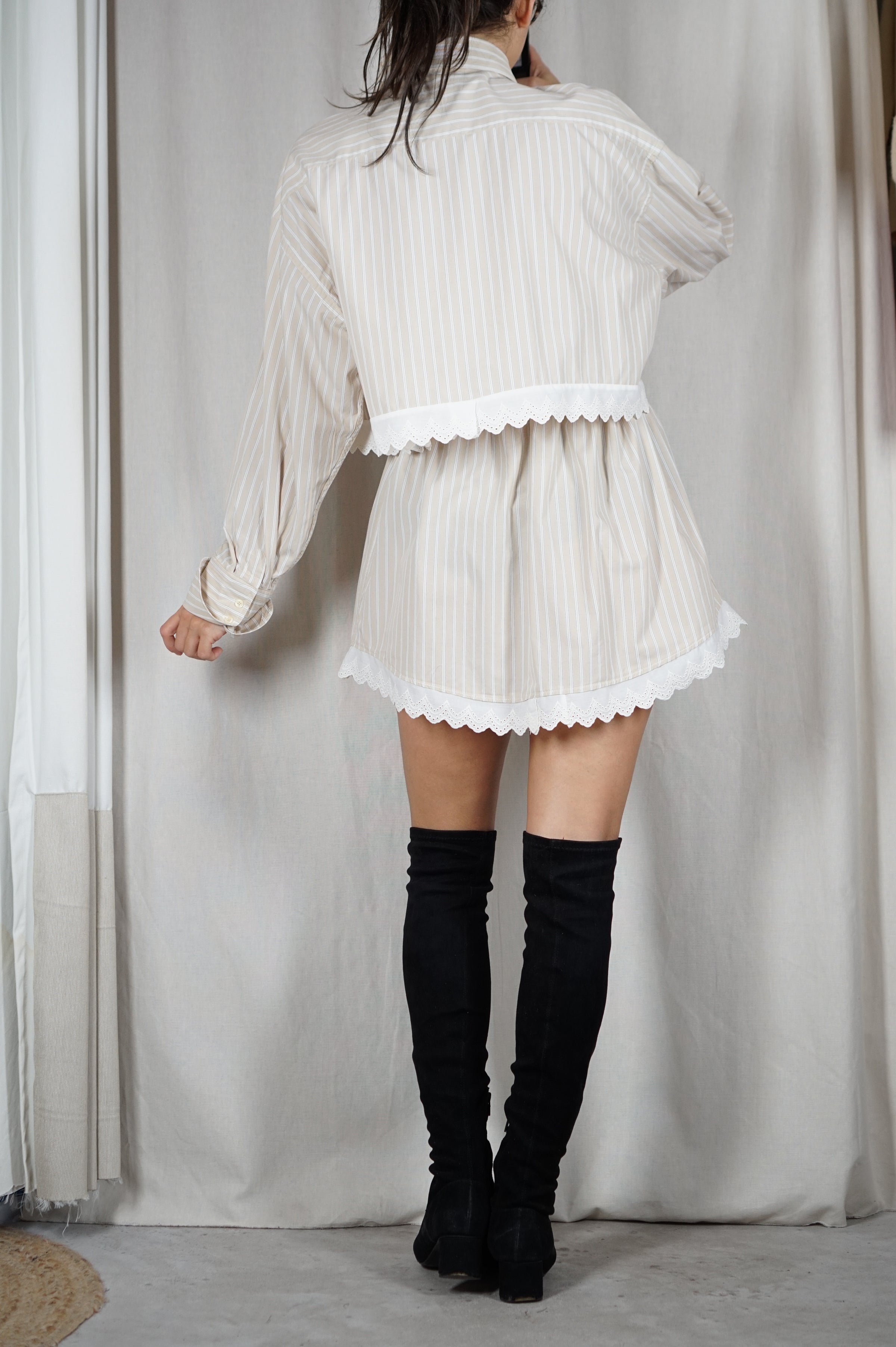 L'Ensemble Chemise Sable Rayé - Pièce unique faut le voir porté © - Coton & Broderie anglaise - T. 38 & 40
