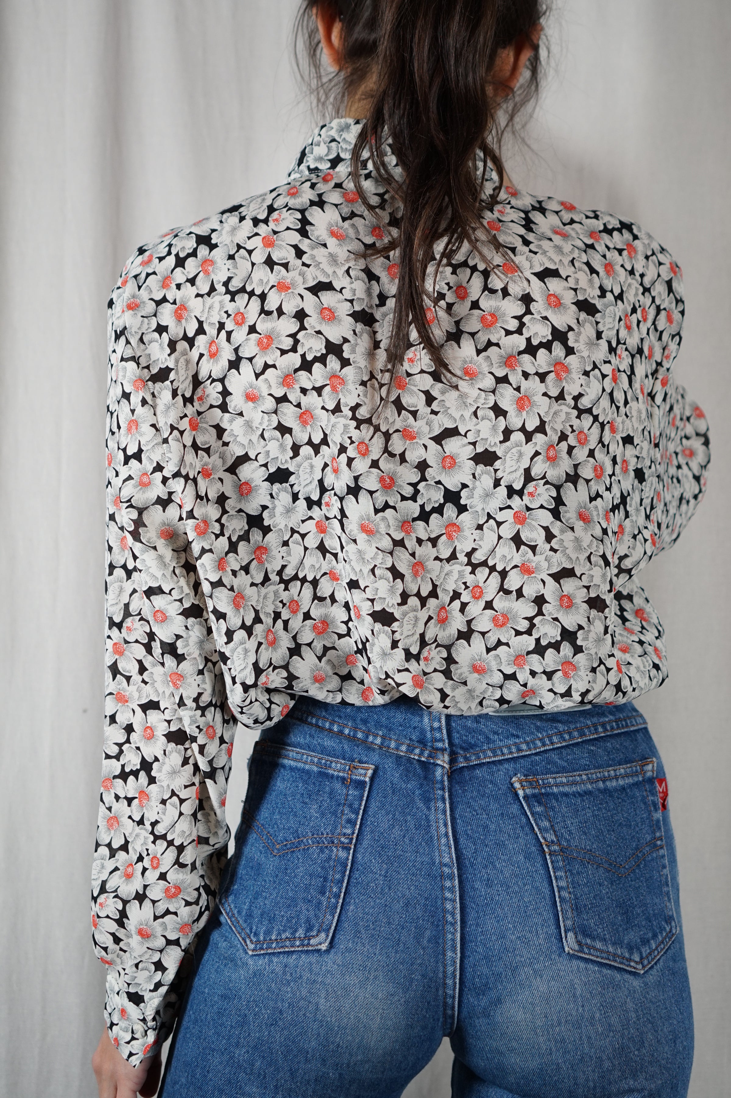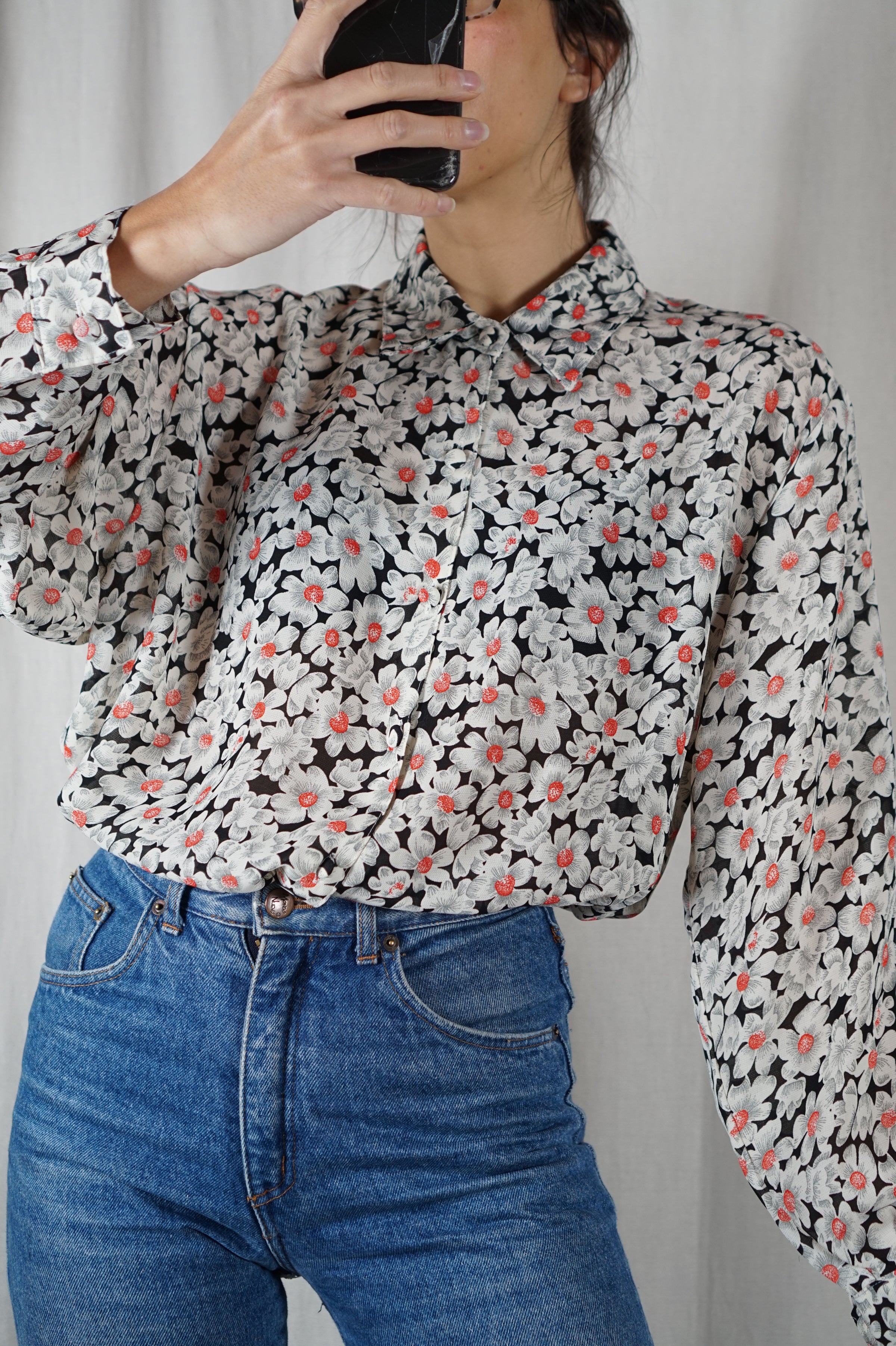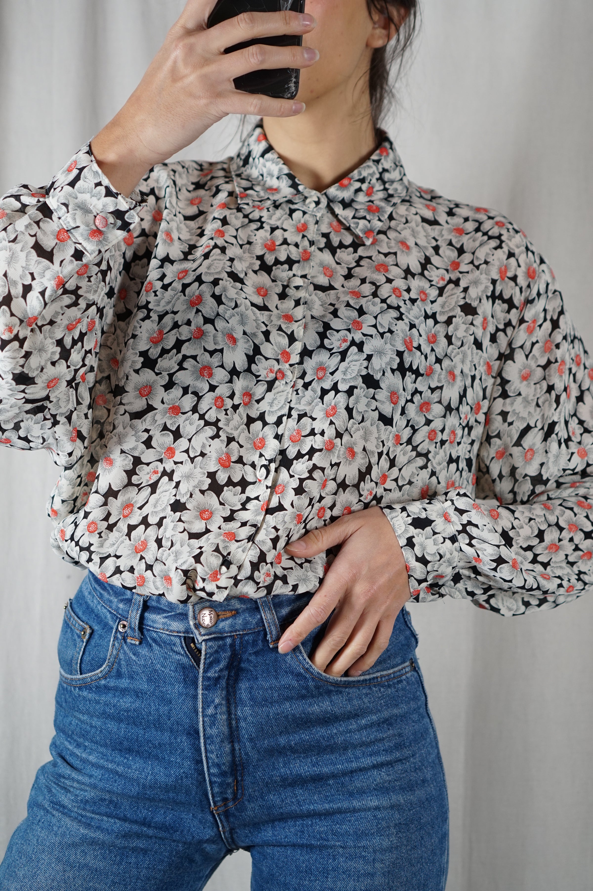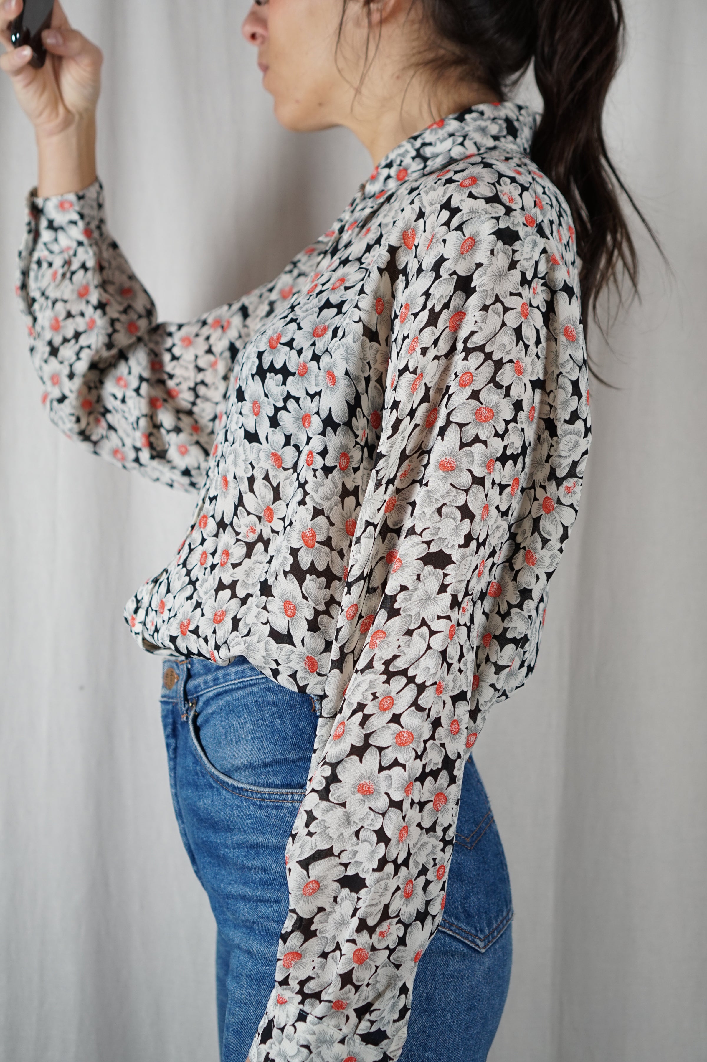 Magnifique Chemise Vintage fleurie en voile de viscose - T. 38 à 44