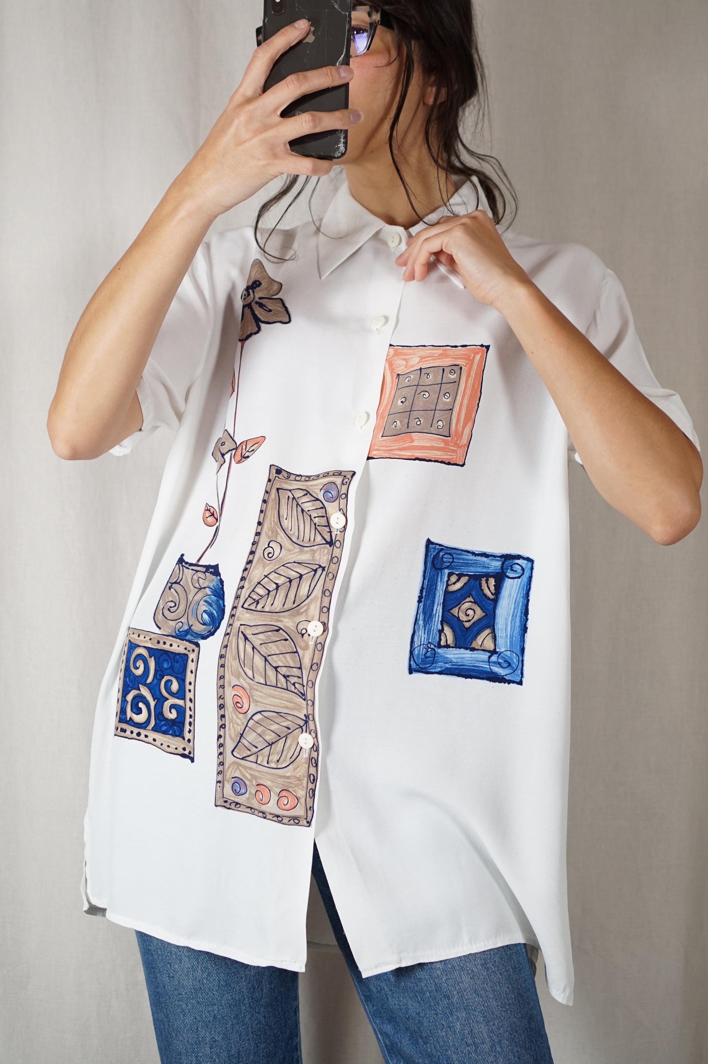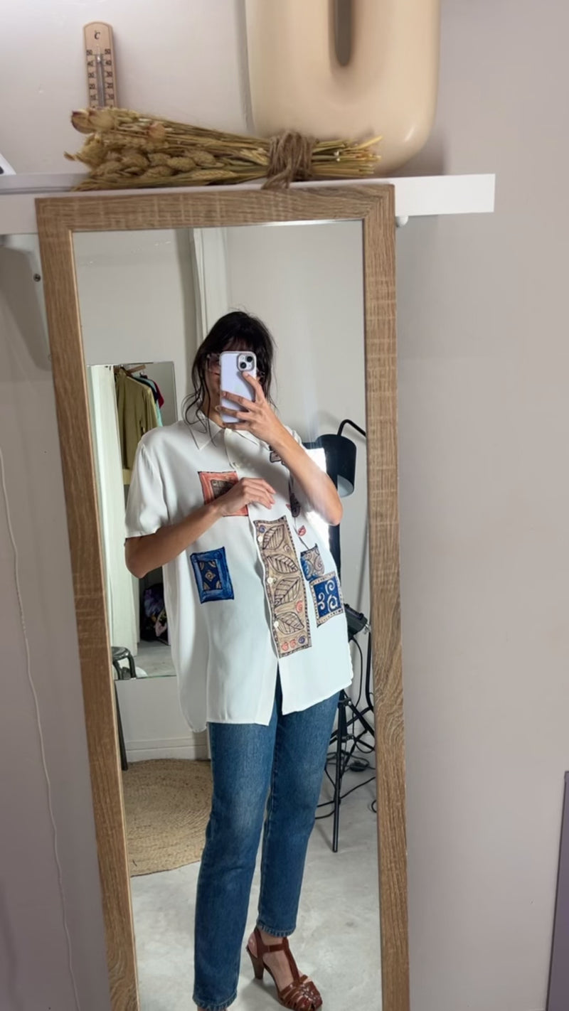Description : Superbe Chemise Vintage longue imprimée - magnifiques couleurs - Fluide - Viscose - très belle qualité
