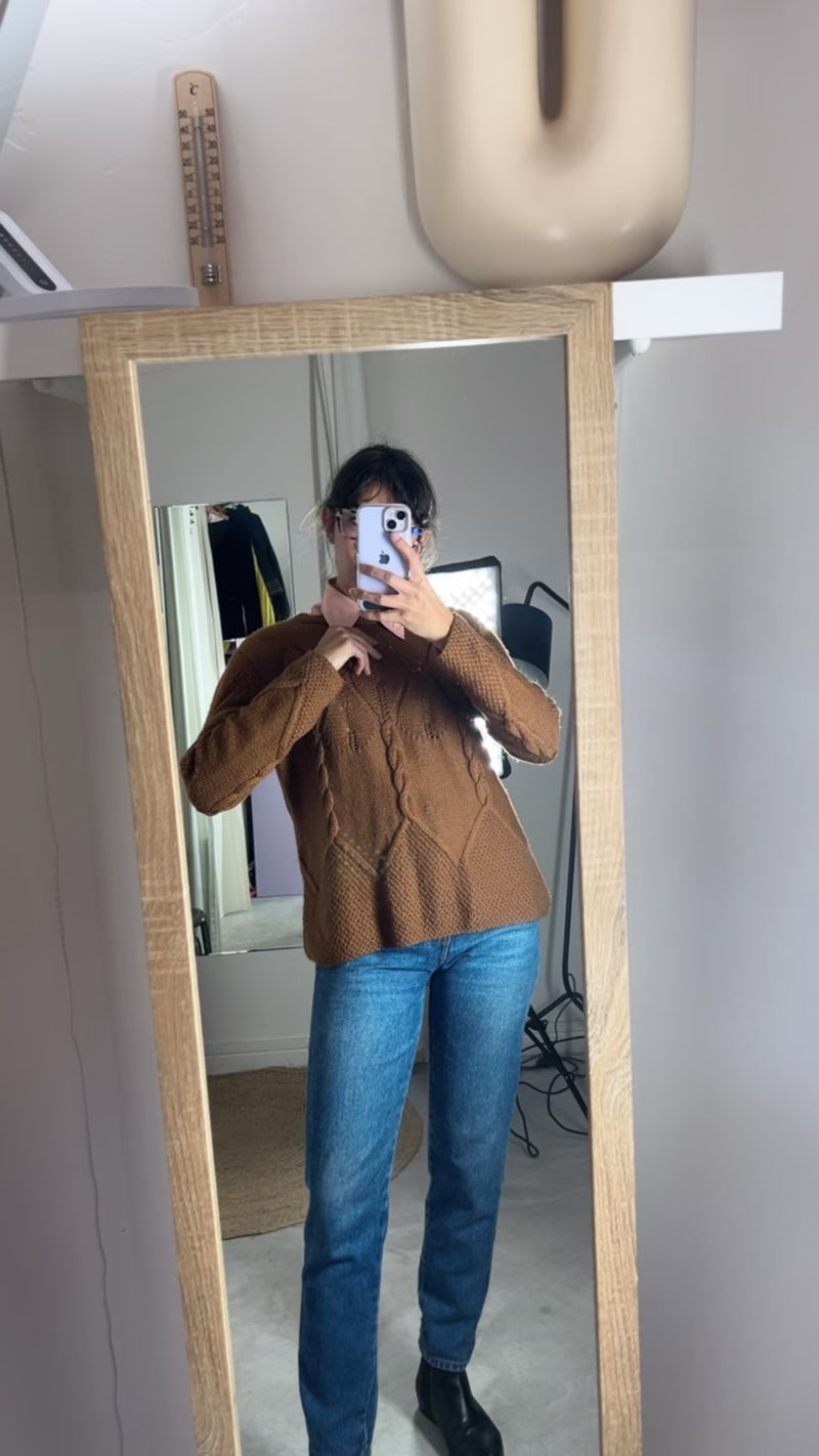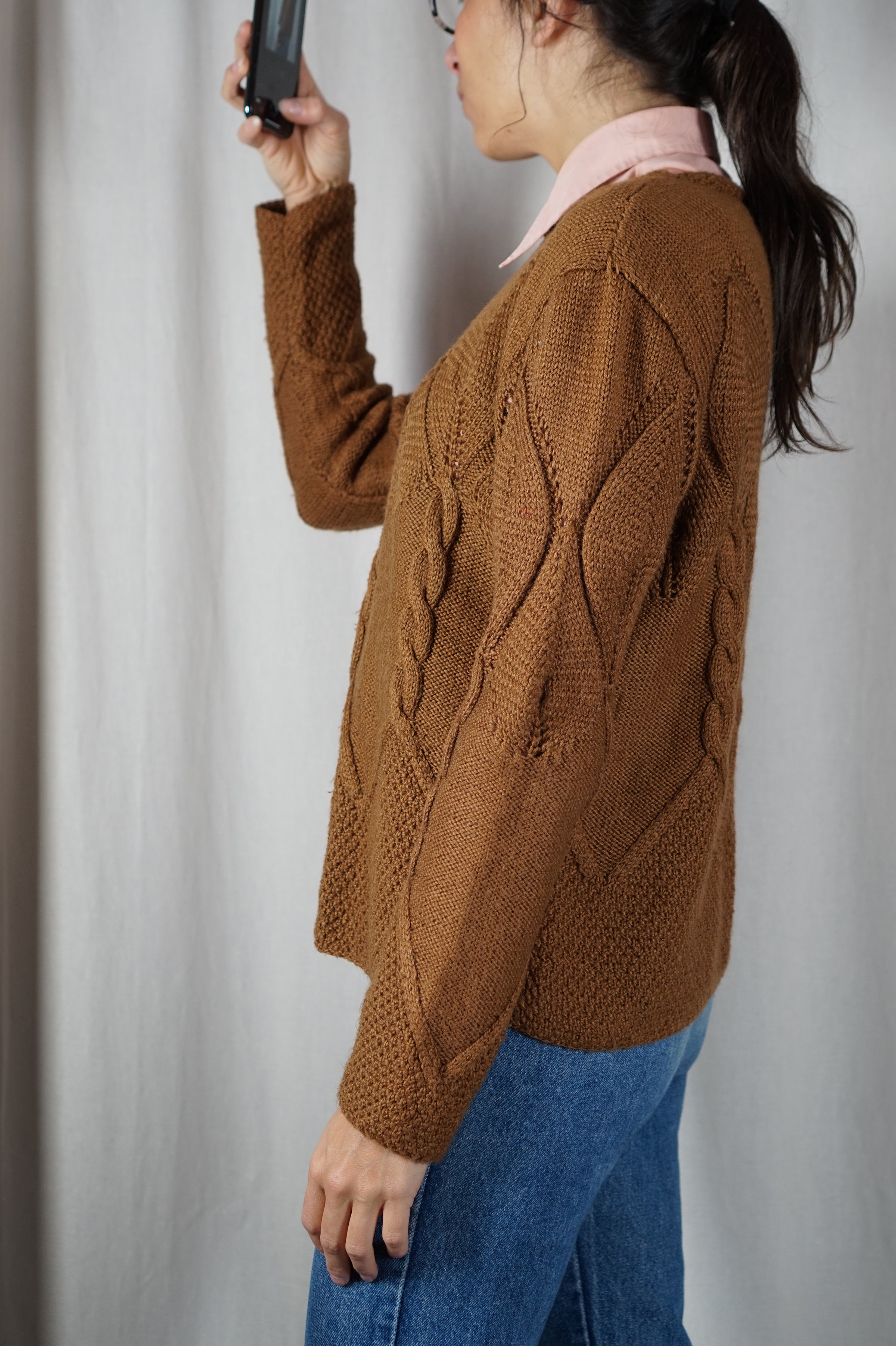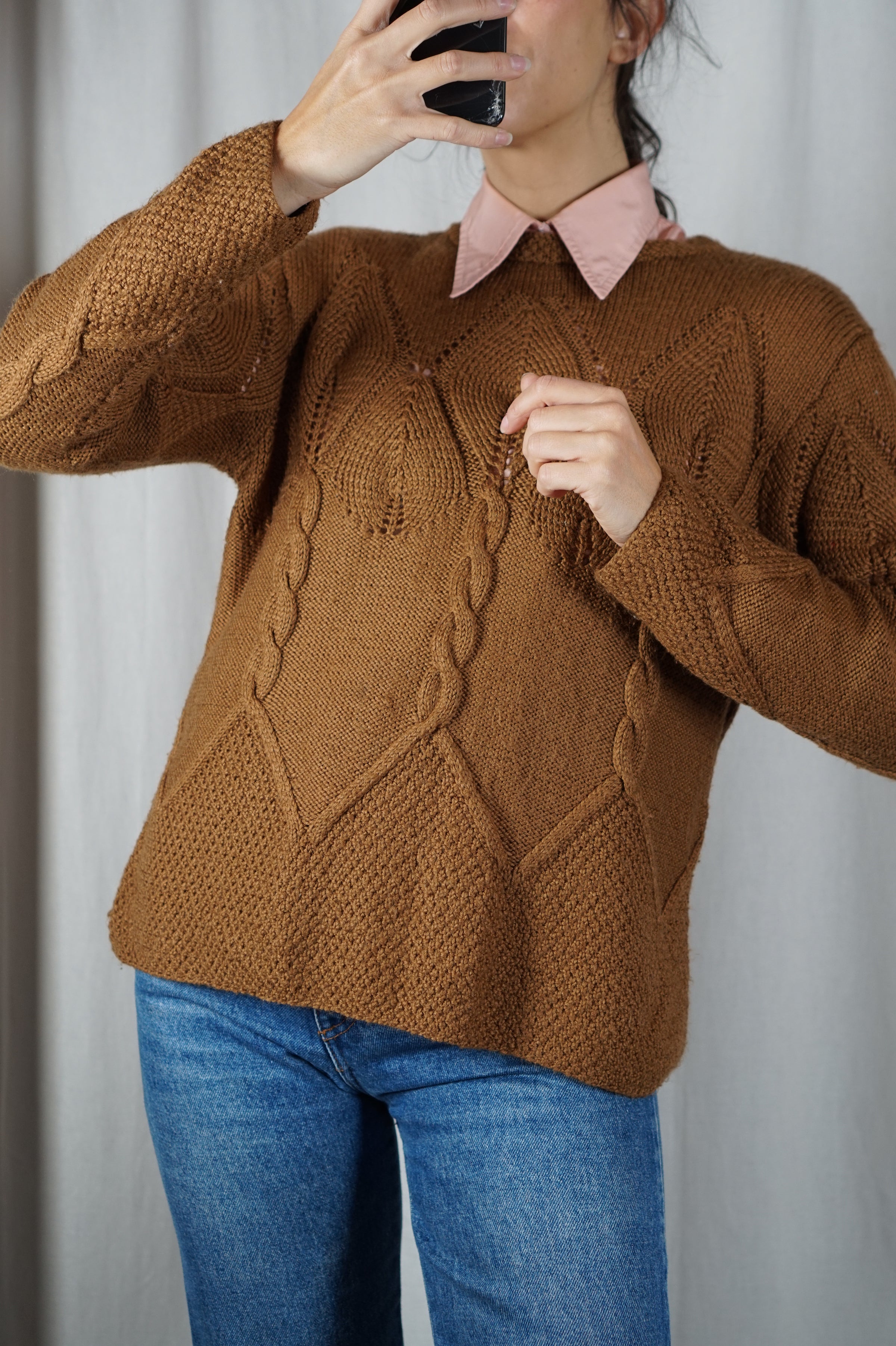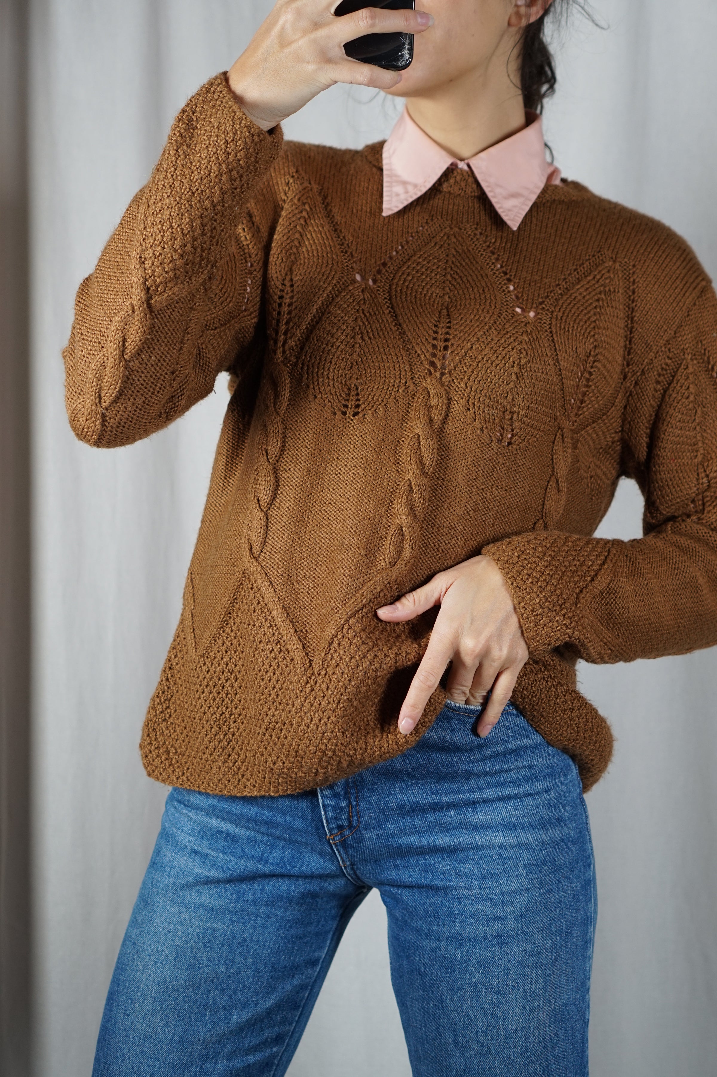 Superbe Pull Vintage tricoté main - Laine - T. 36/38 à petit 42