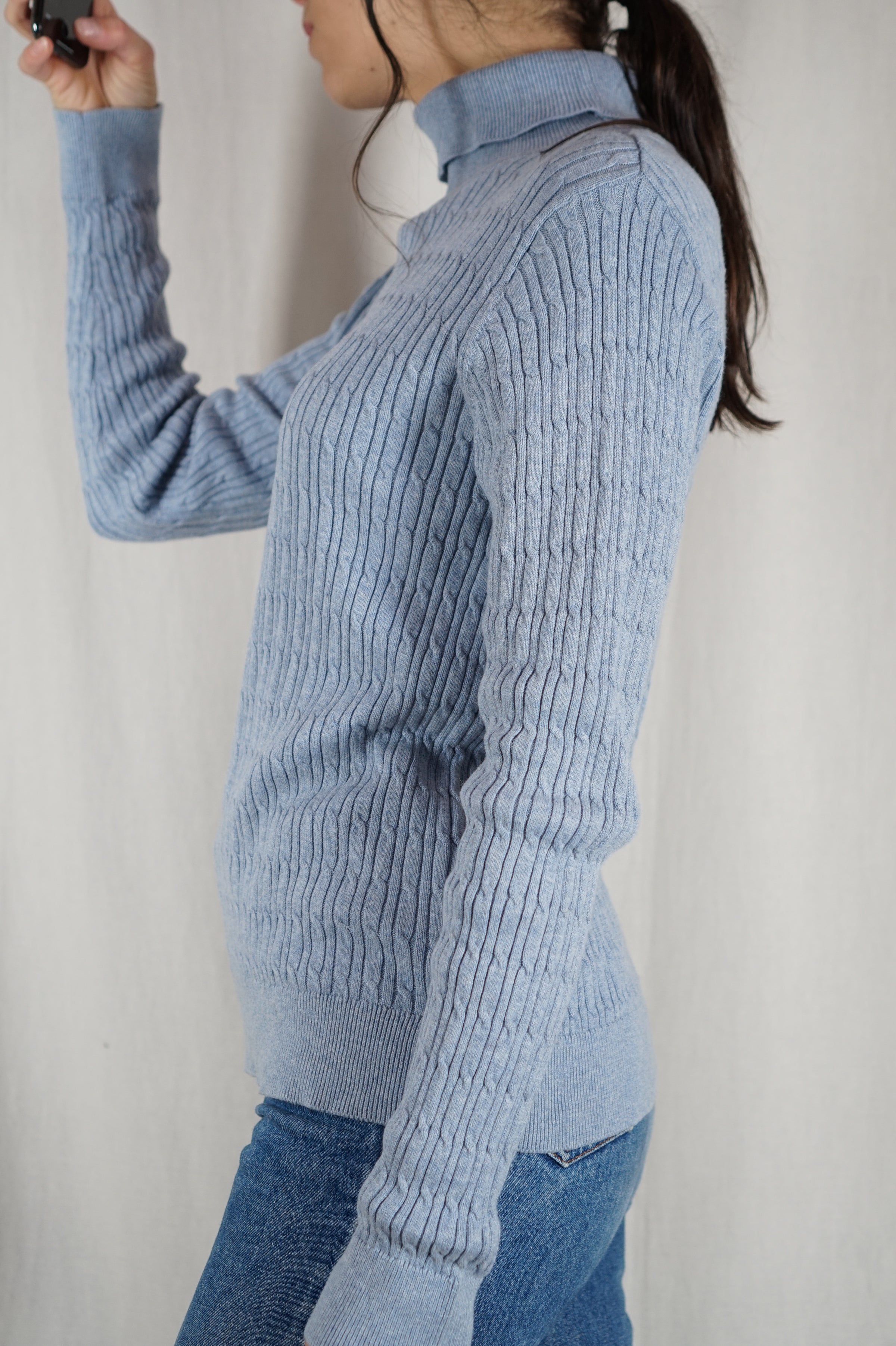 Description  : Joli Maille torsadée bleu chiné, il ne s'agit pas d'une pièce vintage mais la qualité est très belle - très agréable à porter - 100% Coton - idéal intersaison