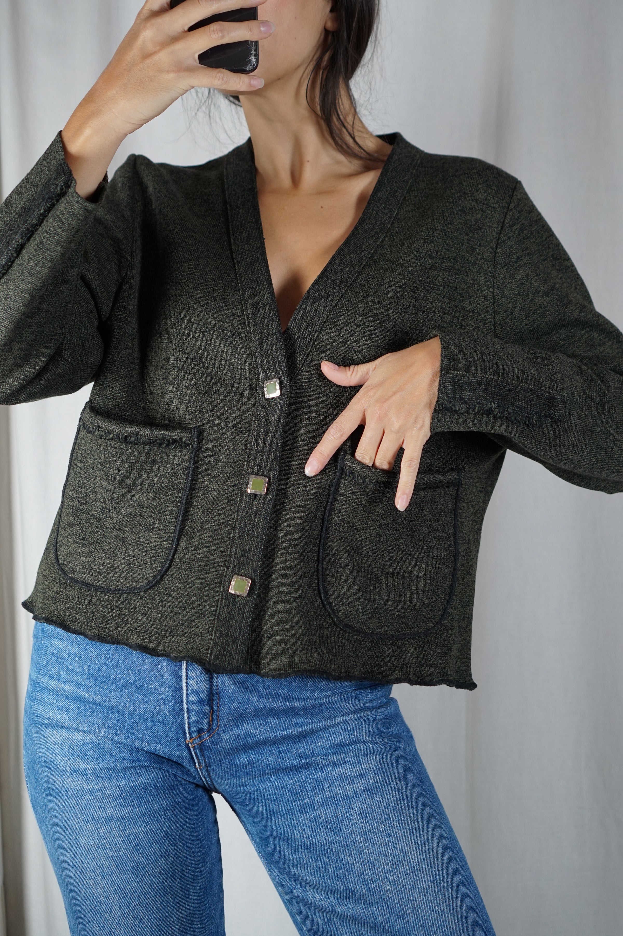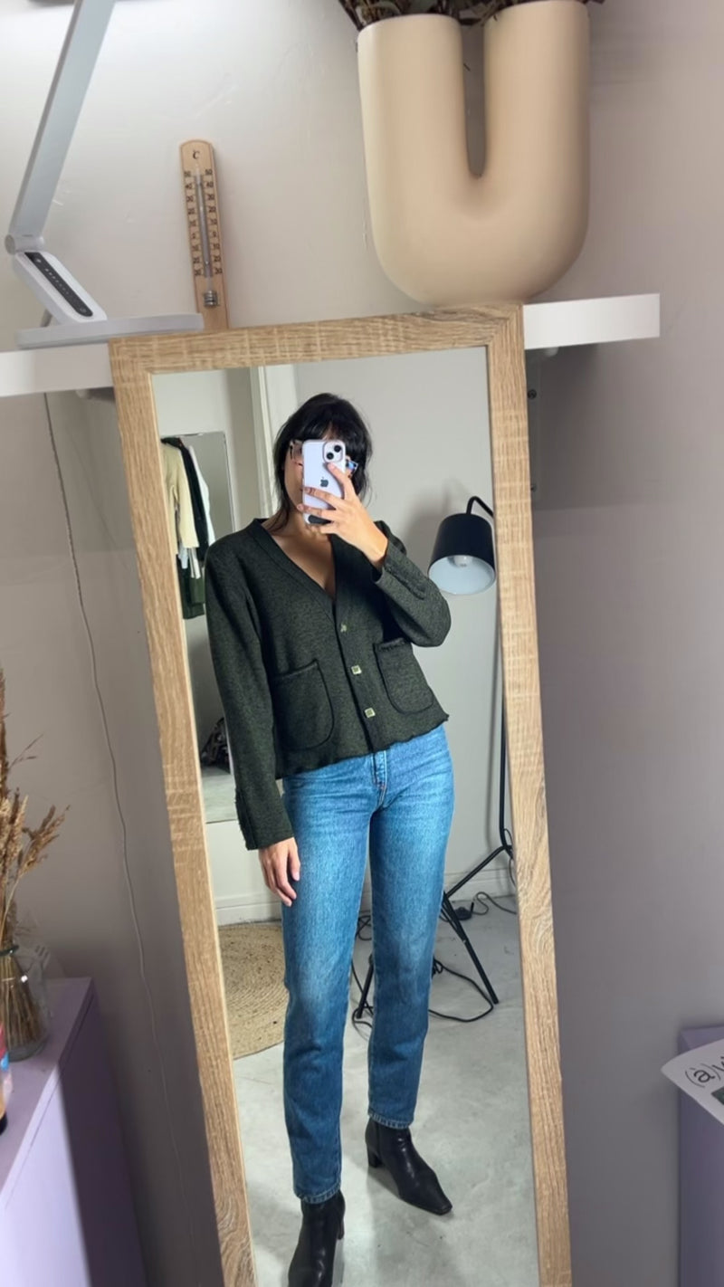 Cardigan Upcyclé couleur Vert forêt - Pièce Unique faut le voir porté - T. 36 à petit 40