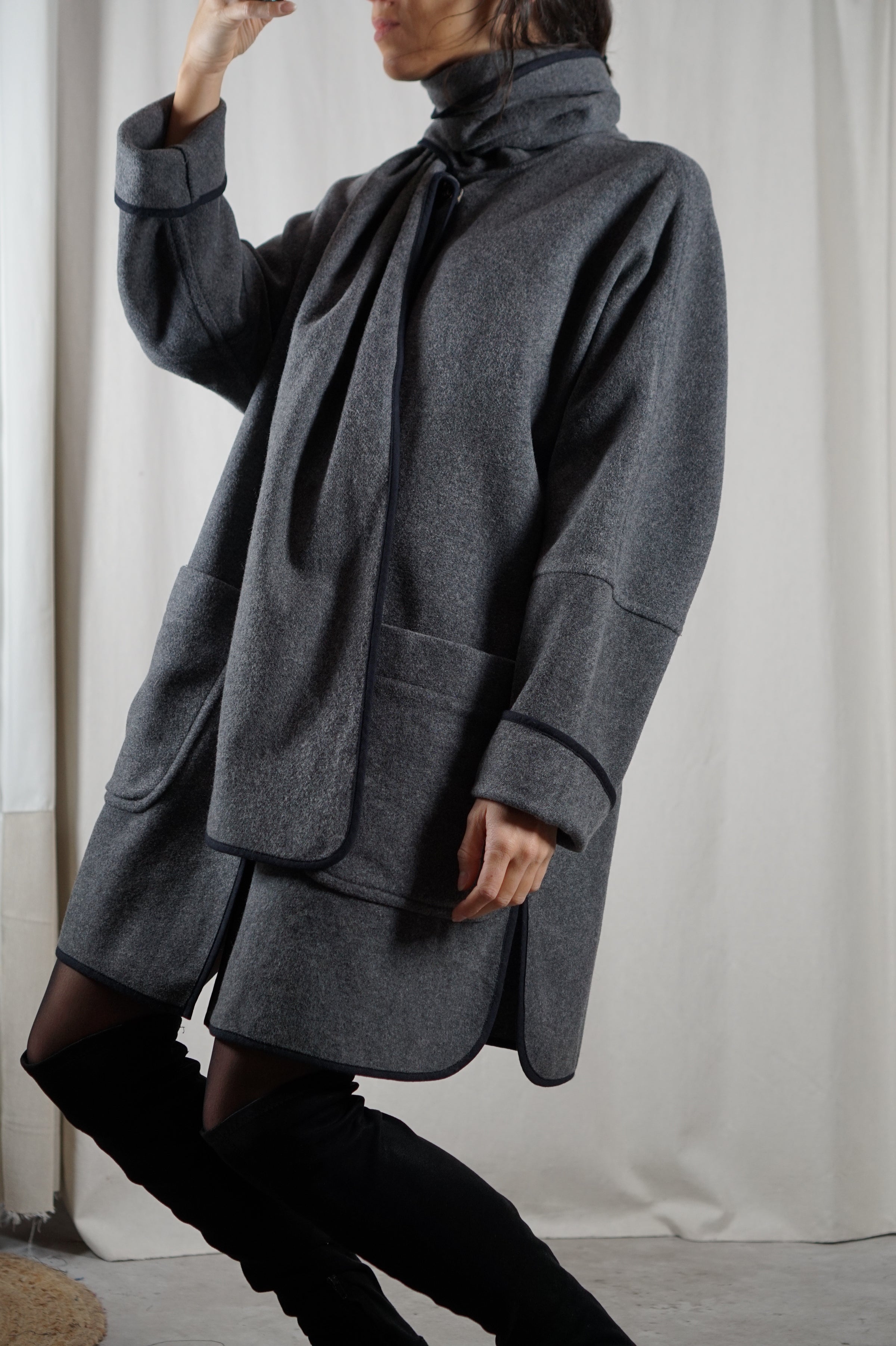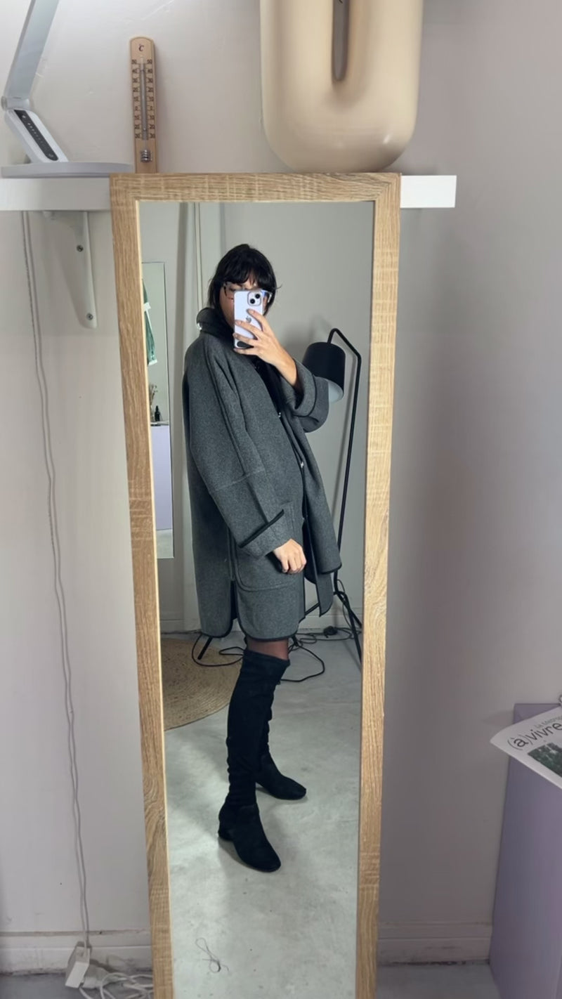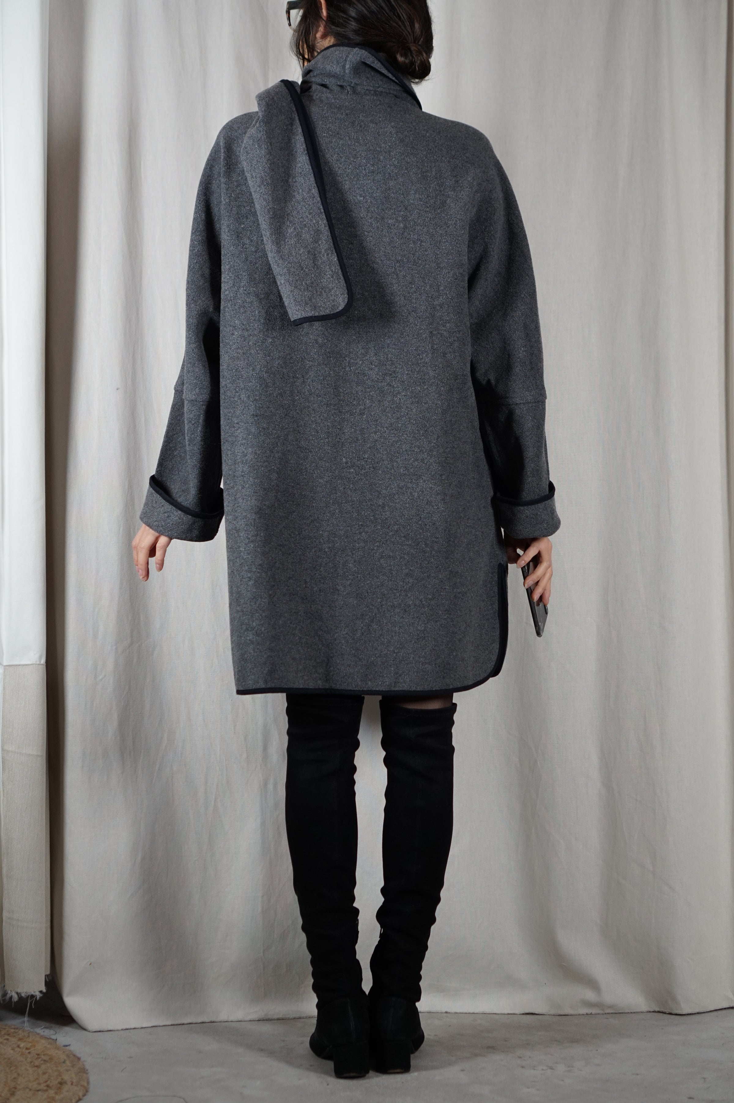 Description : Incroyable manteau Vintage en laine fine (mais chaude) - Pièce RARE - Se portera écharpe lâchée ou enroulée autour du coup - énorme coup de coeur! 80% Pure laine vierge et reste polyamide - la pièce a été lavée et repassée au préalable - se portera oversize - idéale fin d'hiver