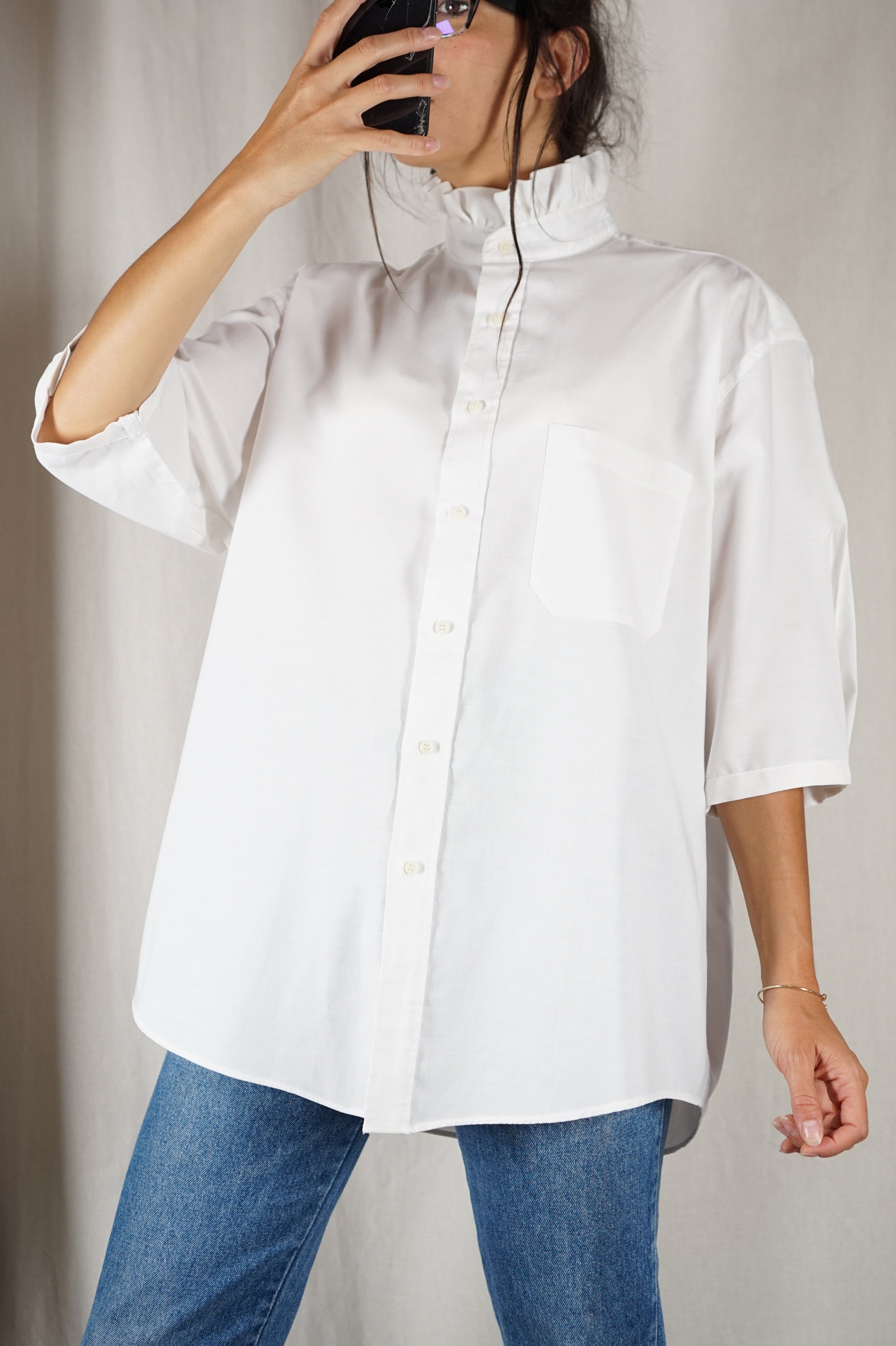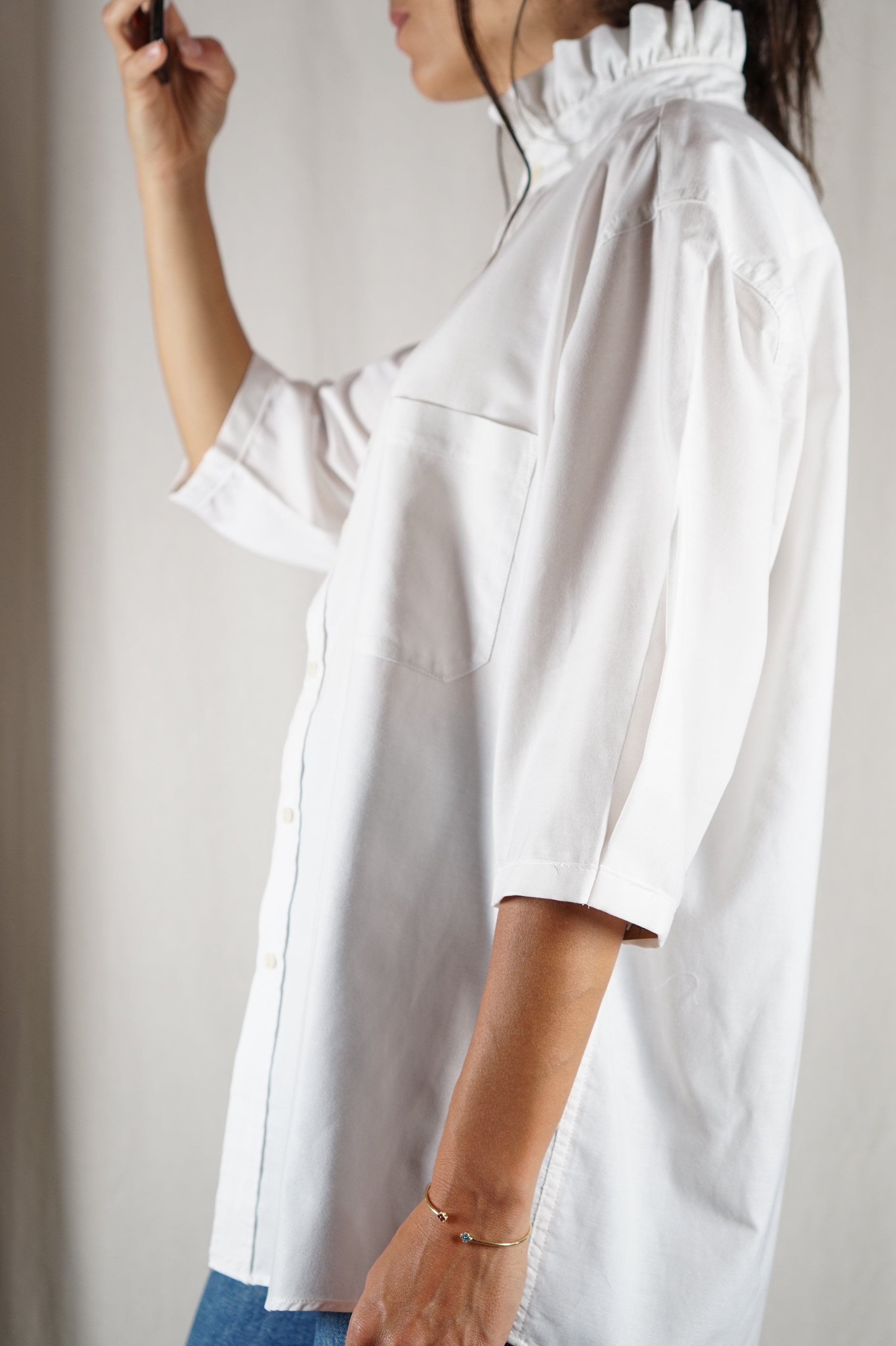 La Chemise Blanche à Collerette - Coton mélangé - Pièce unique faut le voir porté © - T. 40/42 à 46 - Idéal grandes!