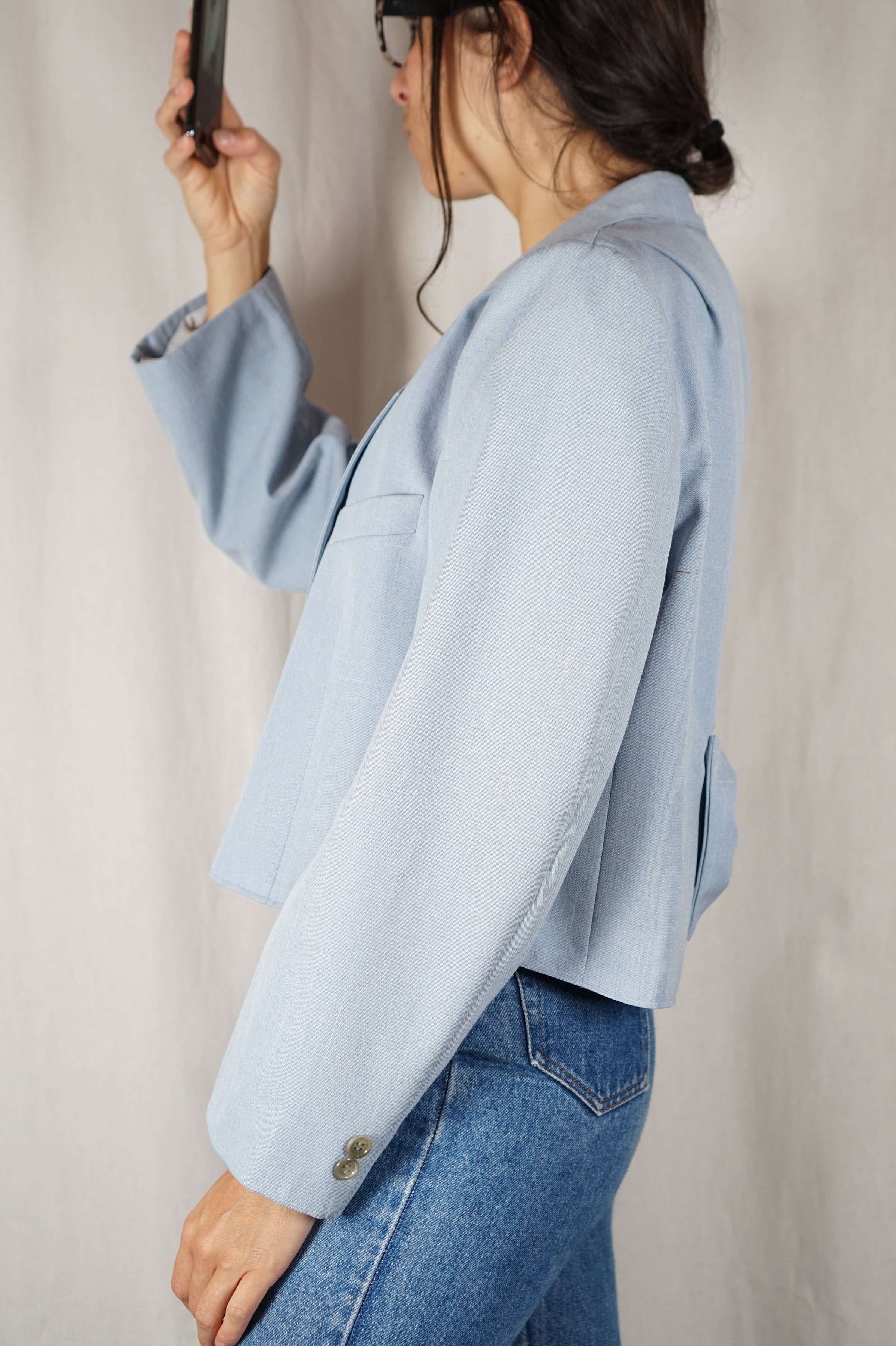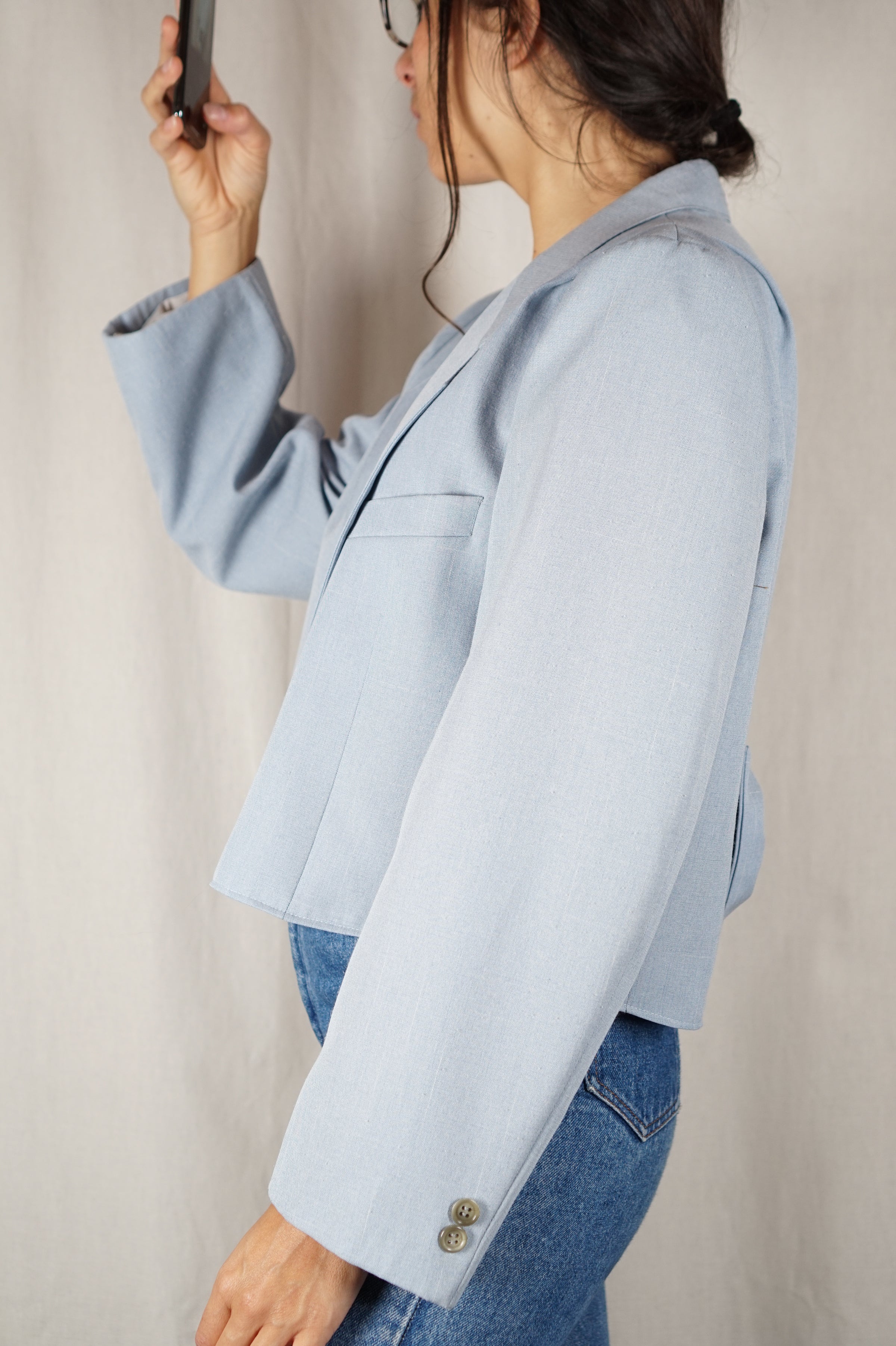 La Veste à Noeud bleu ciel chiné - Pièce unique faut le voir porté © - T. 36 à grand 38