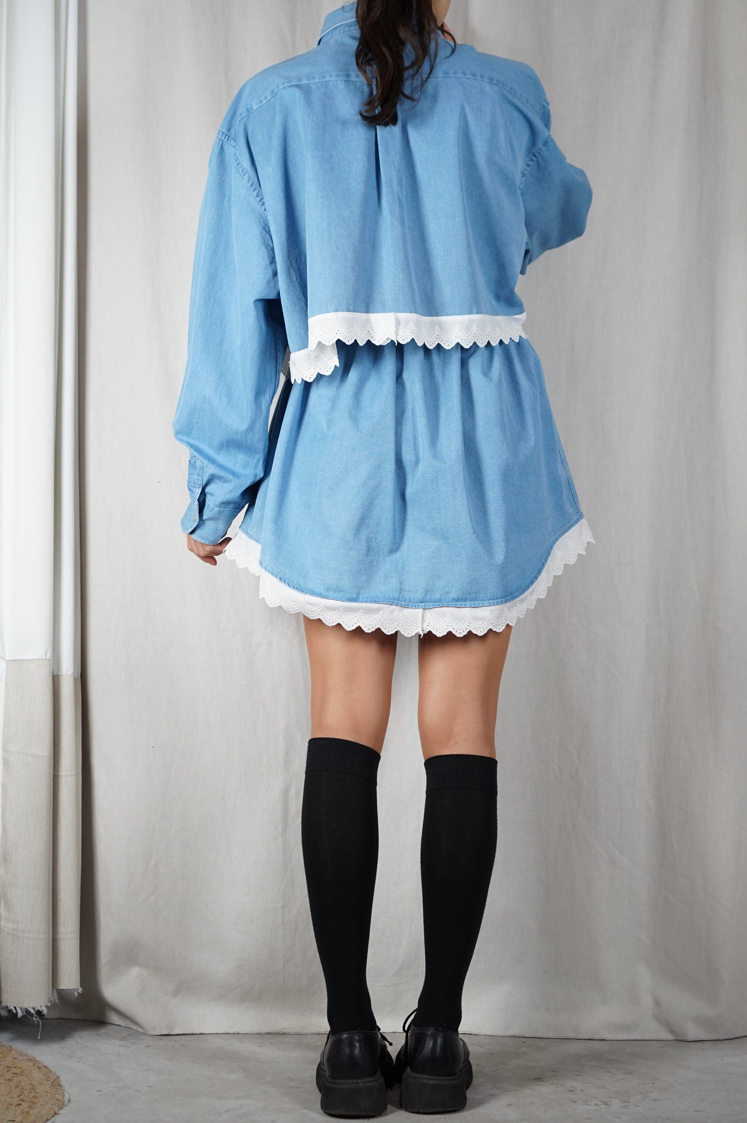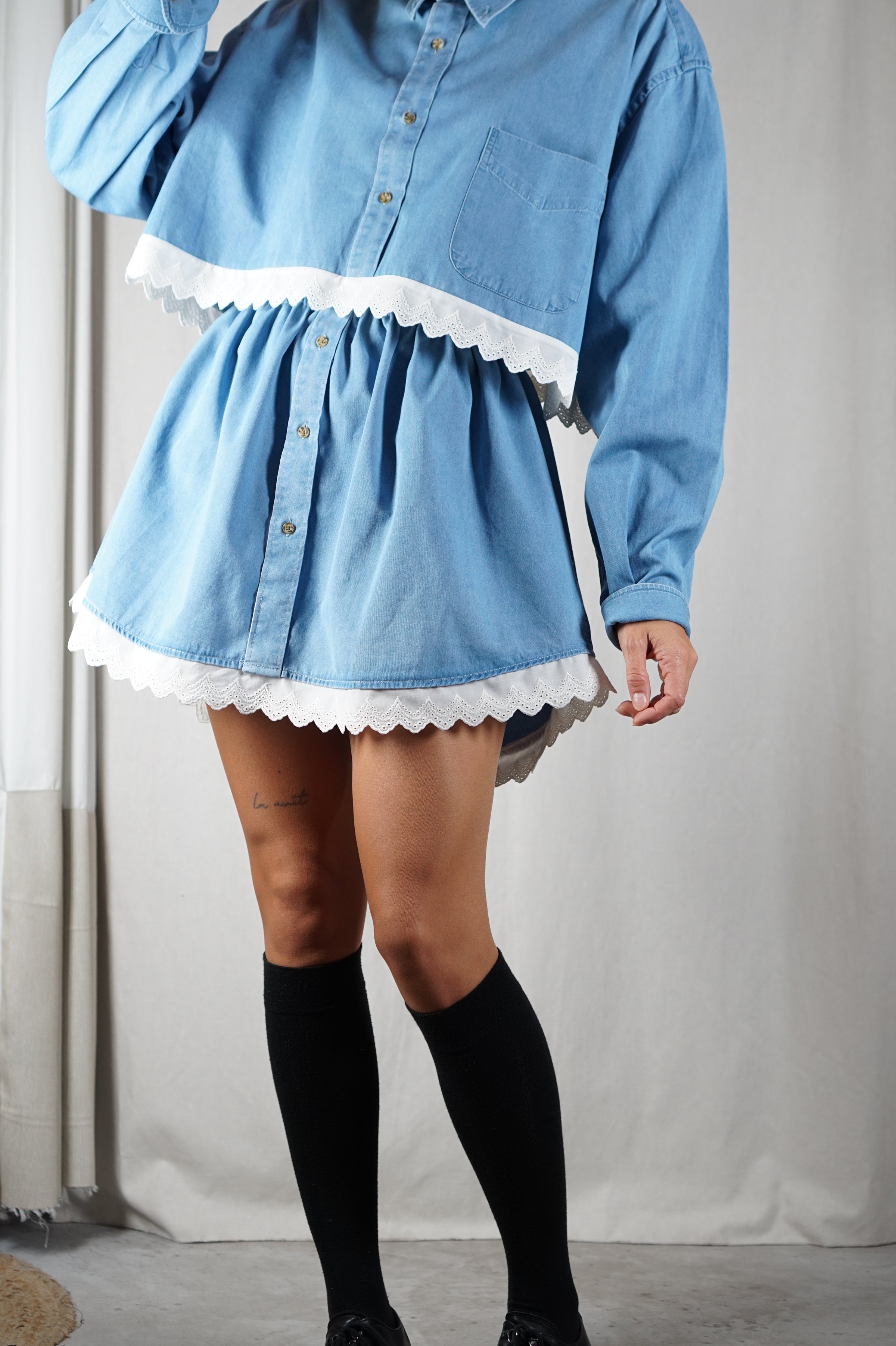 L'Ensemble Chemise Denim Clair - Pièce unique faut le voir porté © - 100% Coton & Broderie anglaise - T. 40 à 44