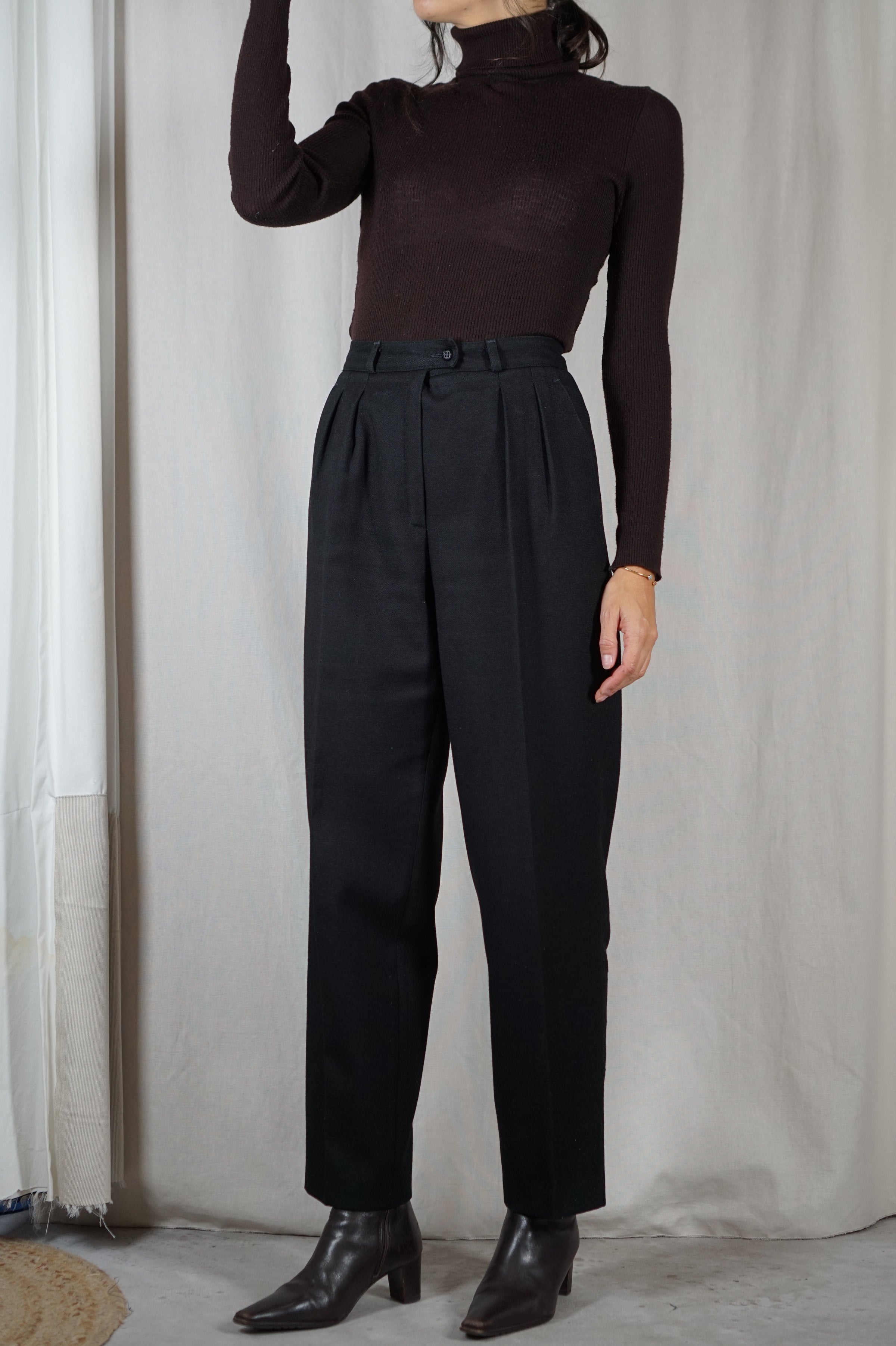 Magnifique Pantalon Vintage noir à pinces - Laine mélangée - T.38