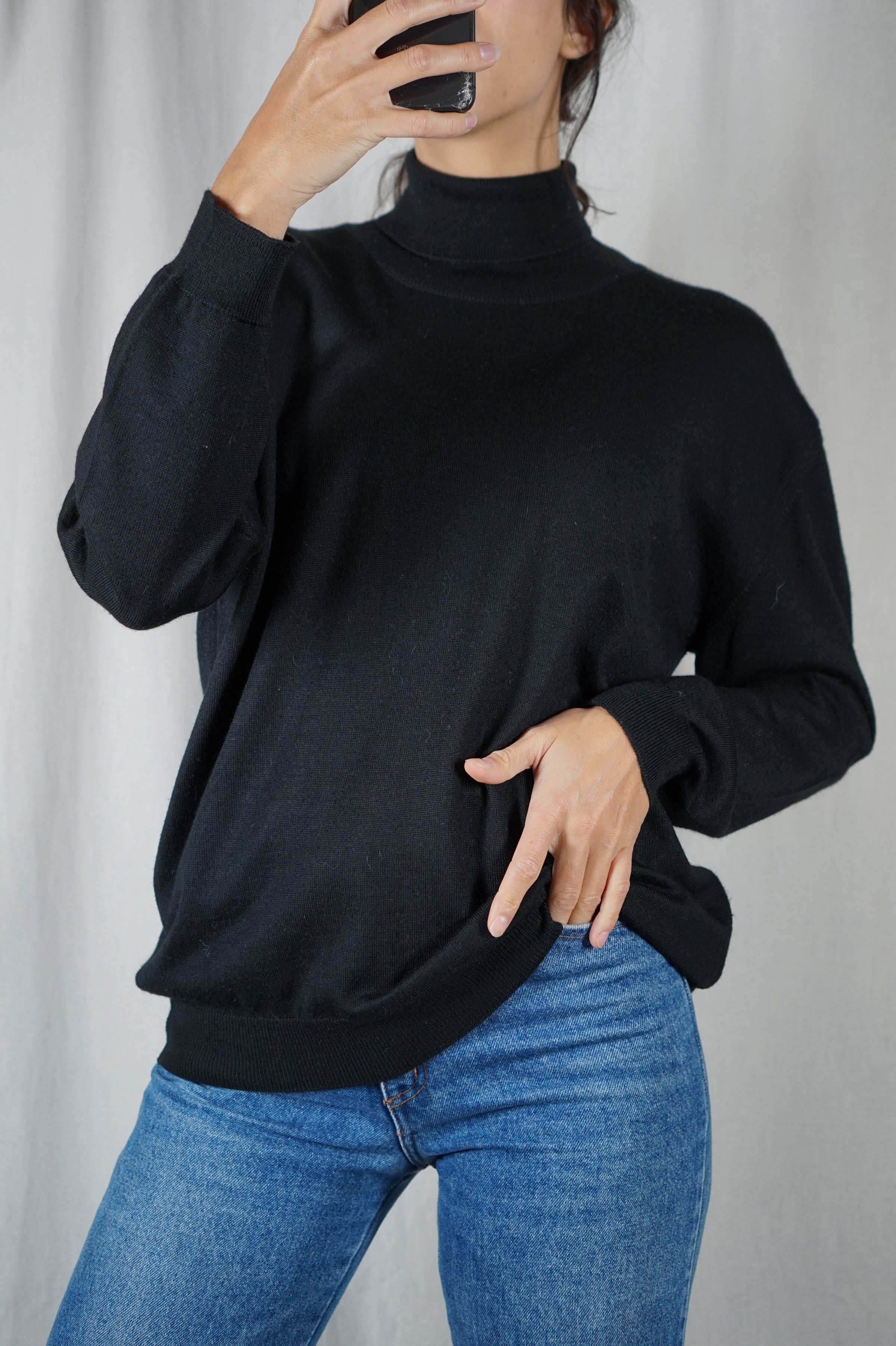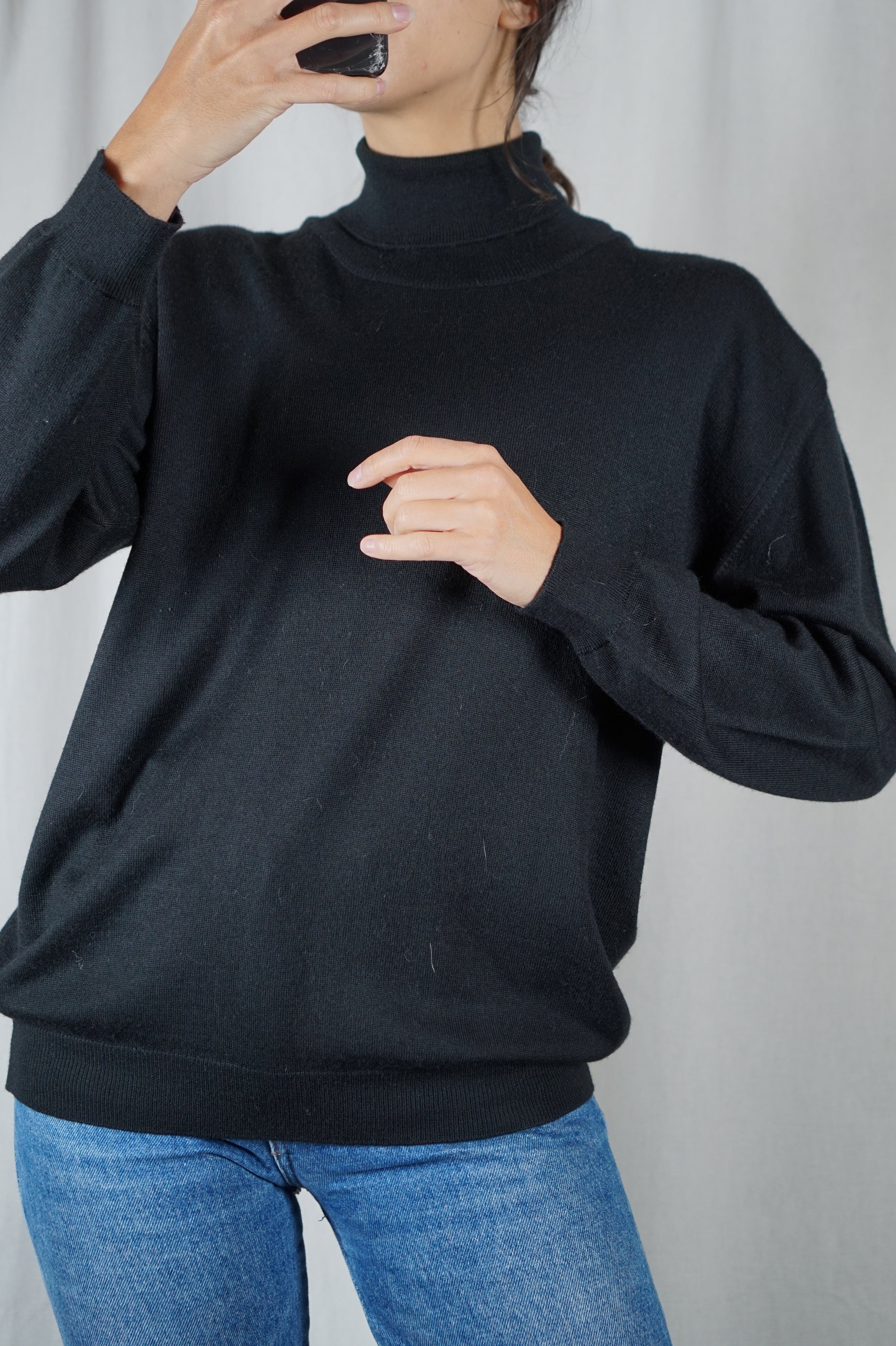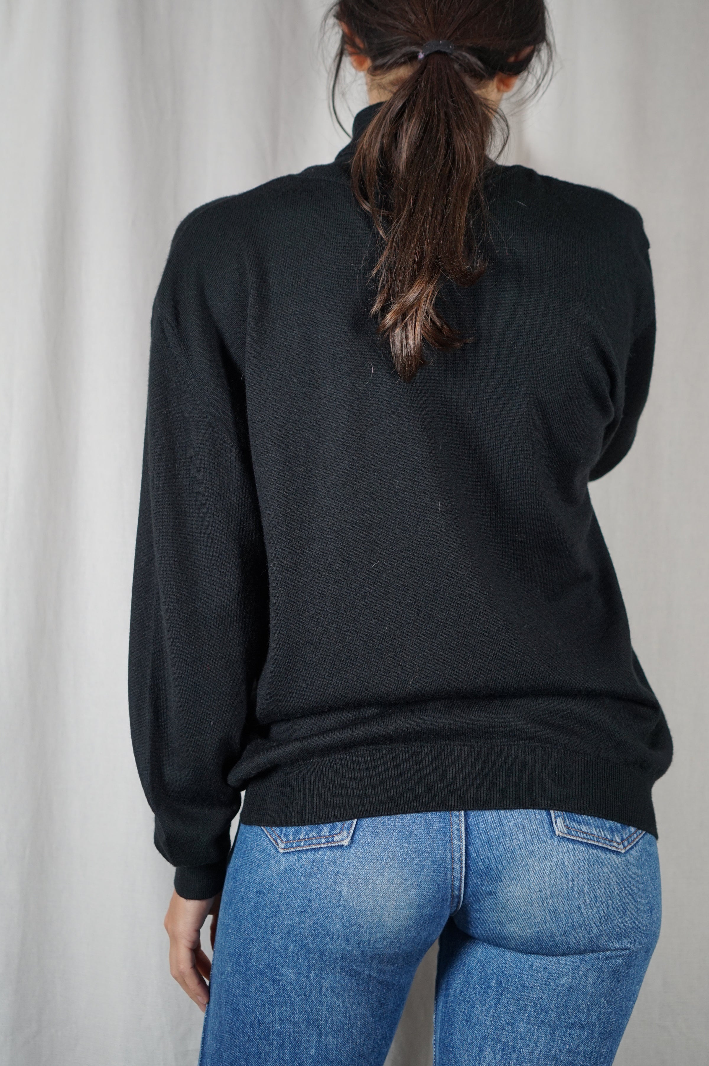 Magnifique Pull Vintage noir profond - Laine - T. 40 & 42