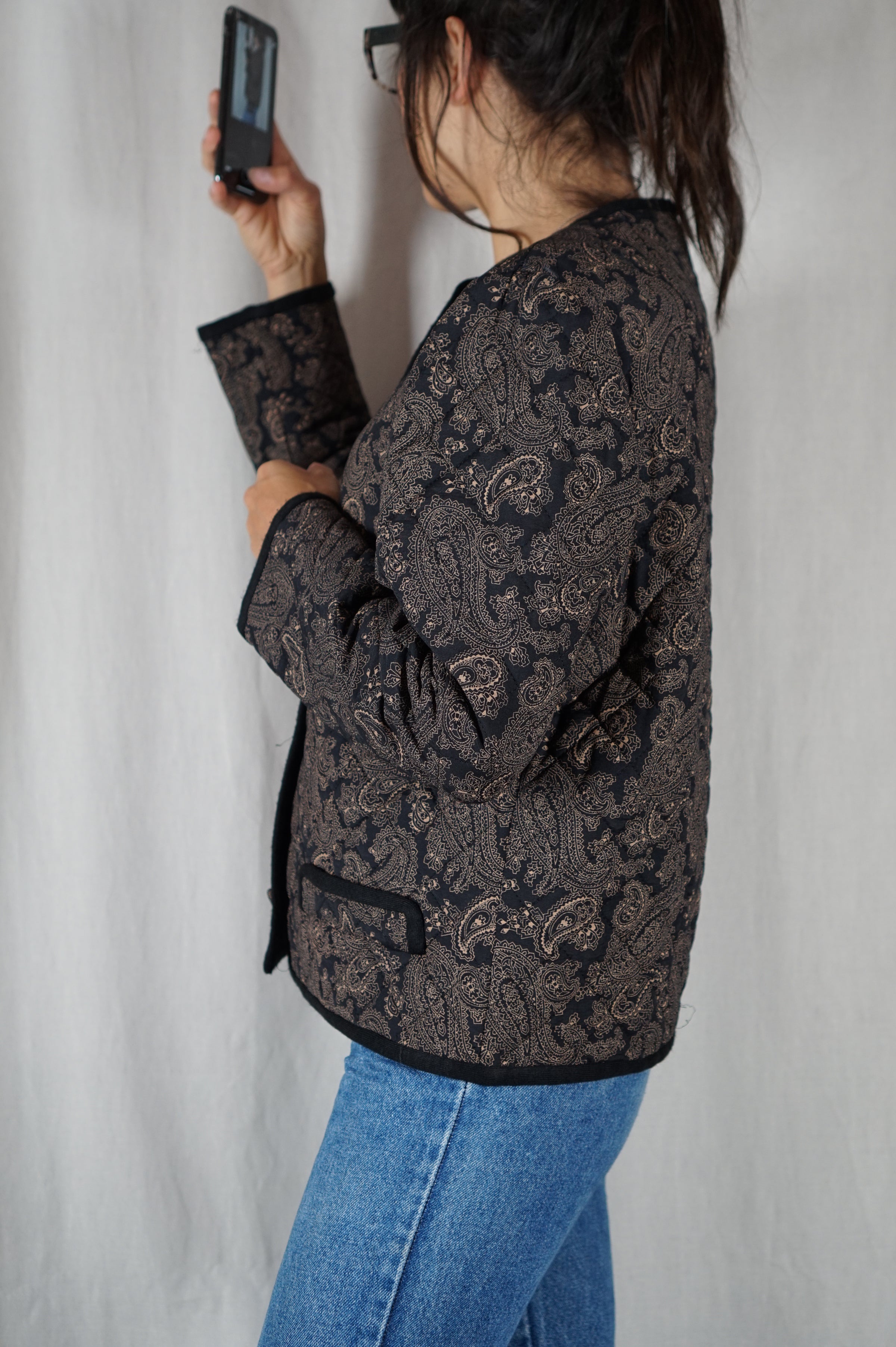 Description  : Superbe Veste Vintage finement matelassée - très belle pièce - il doit s'agir d'une veste couturière - se porte assez ample - gros coup de coeur, bien plus belle en vrai!